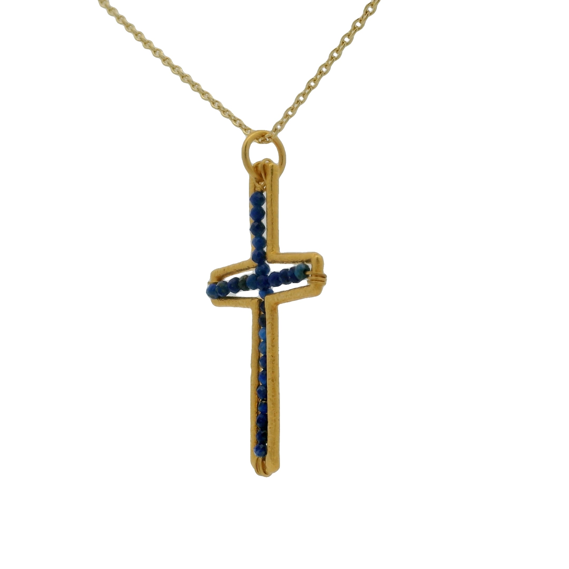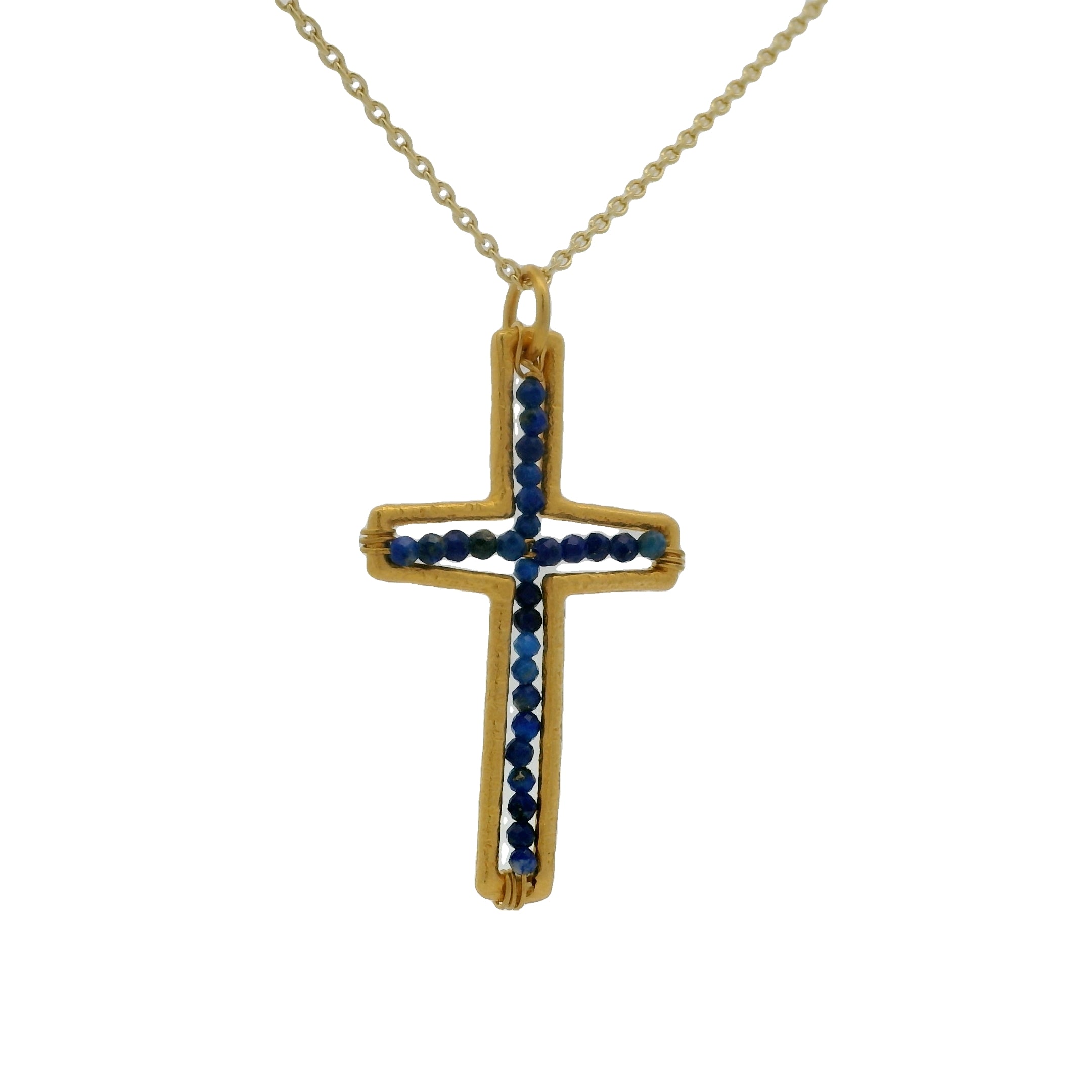 Necklace in brass gilded with 18k fine gold and natural stone cross pendant. The stones are hand-cut and faceted.