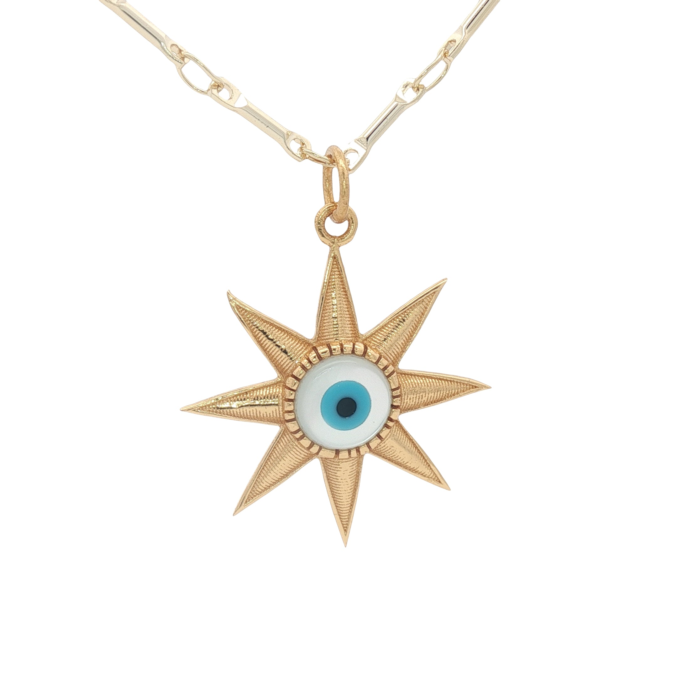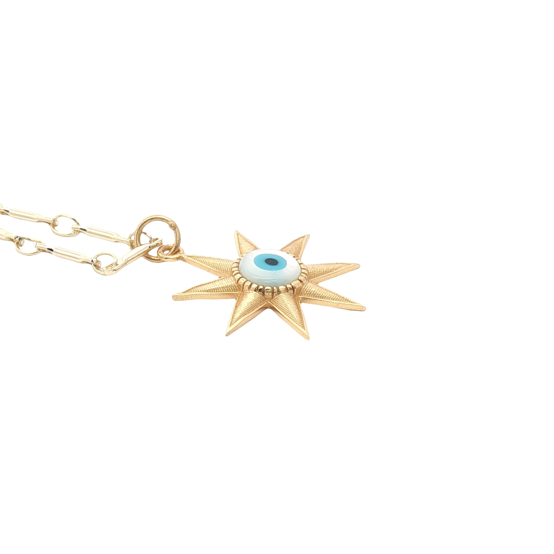 Collier doré médaille avec oeil en nacre et zircons 50 cm