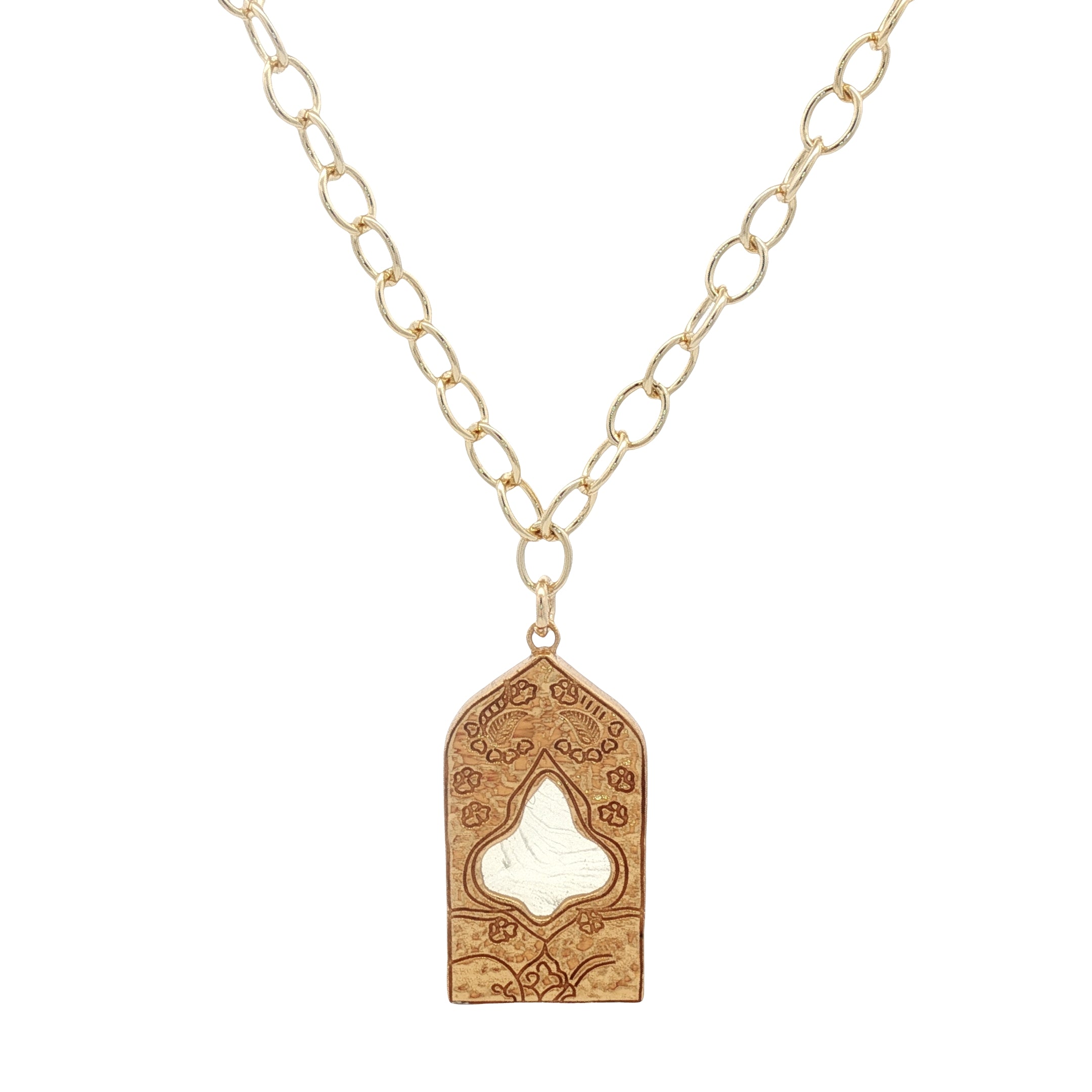 Collier doré porte du Taj Mahal avec prehnite 60 cm