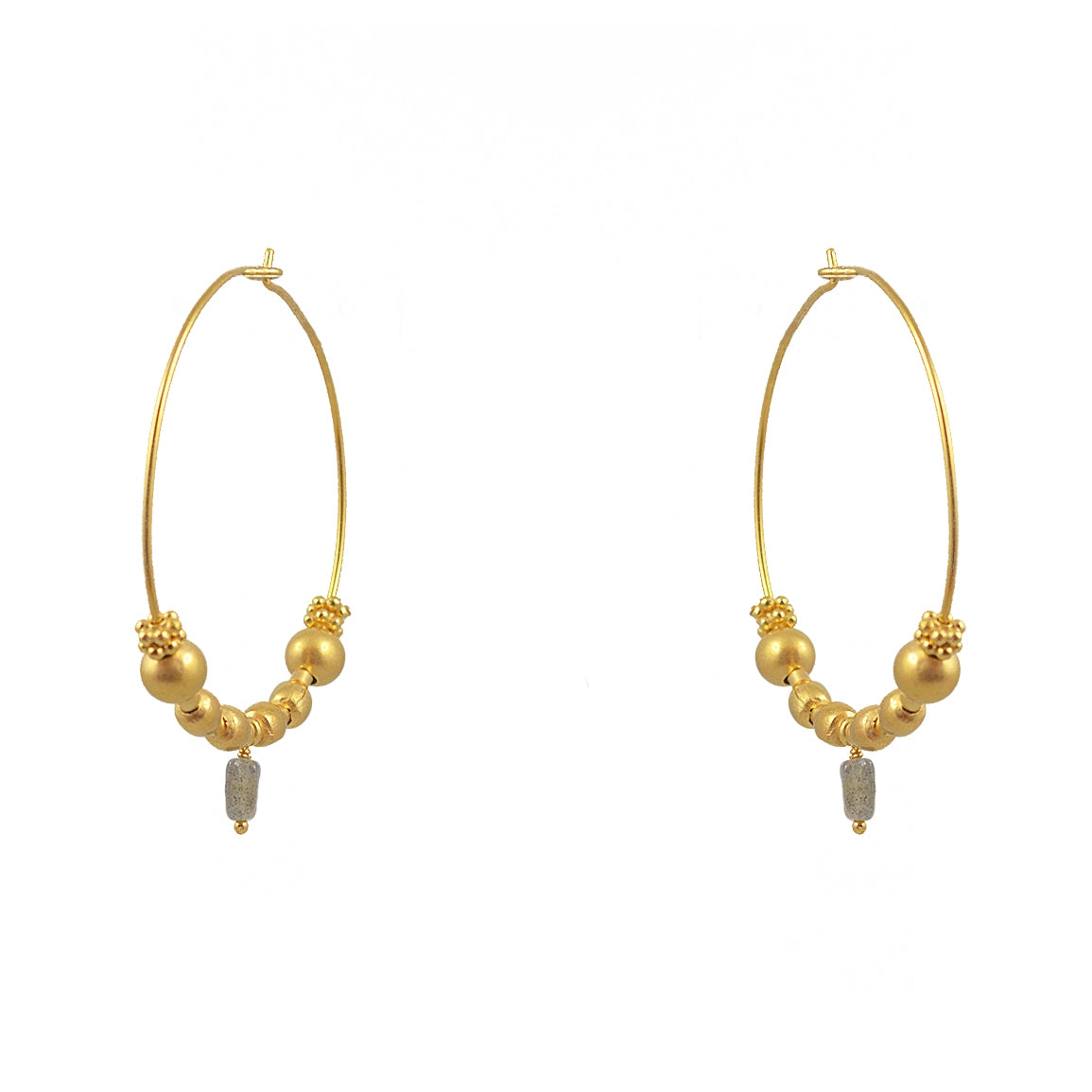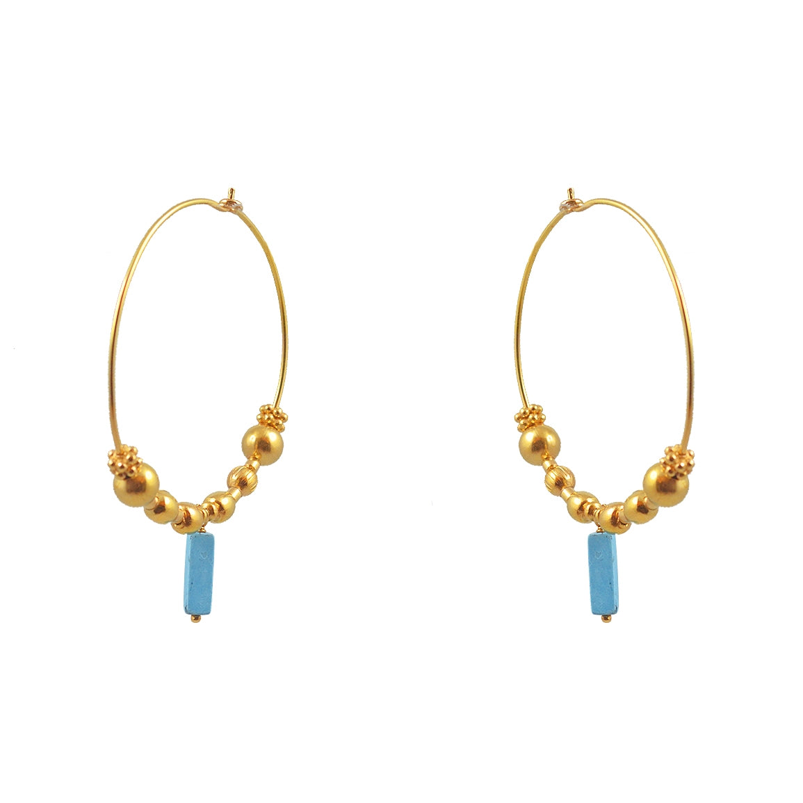 Golden beads on the ring and natural stone cut into a straight rectangle.