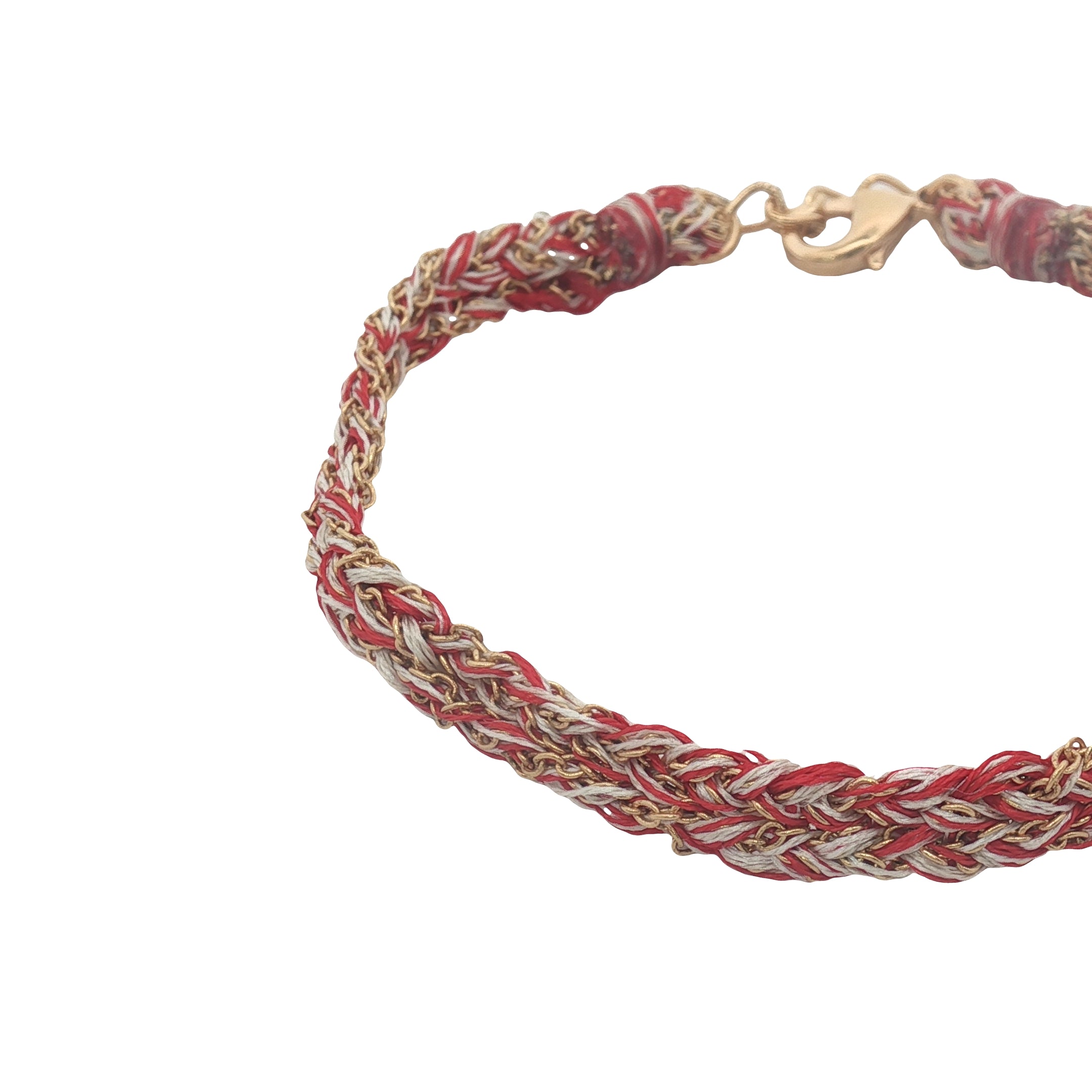 Braided cord and chain bracelets gilded with 18K fine gold