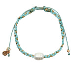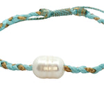 Braided turquoise and gold cord bracelet with cultured pearl in the center