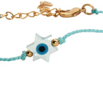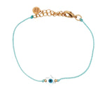 18K fine gold plated chain bracelet with turquoise cord, talismans and mother-of-pearl