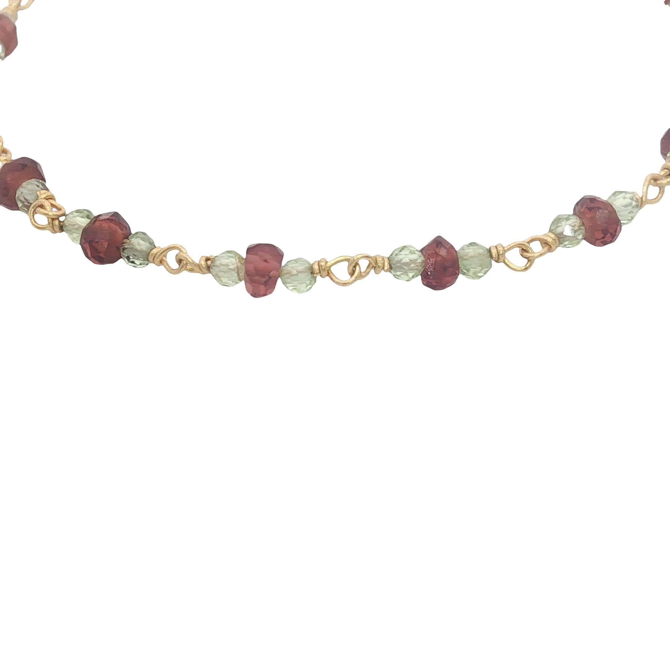 Bracelet doré en grenat et peridot