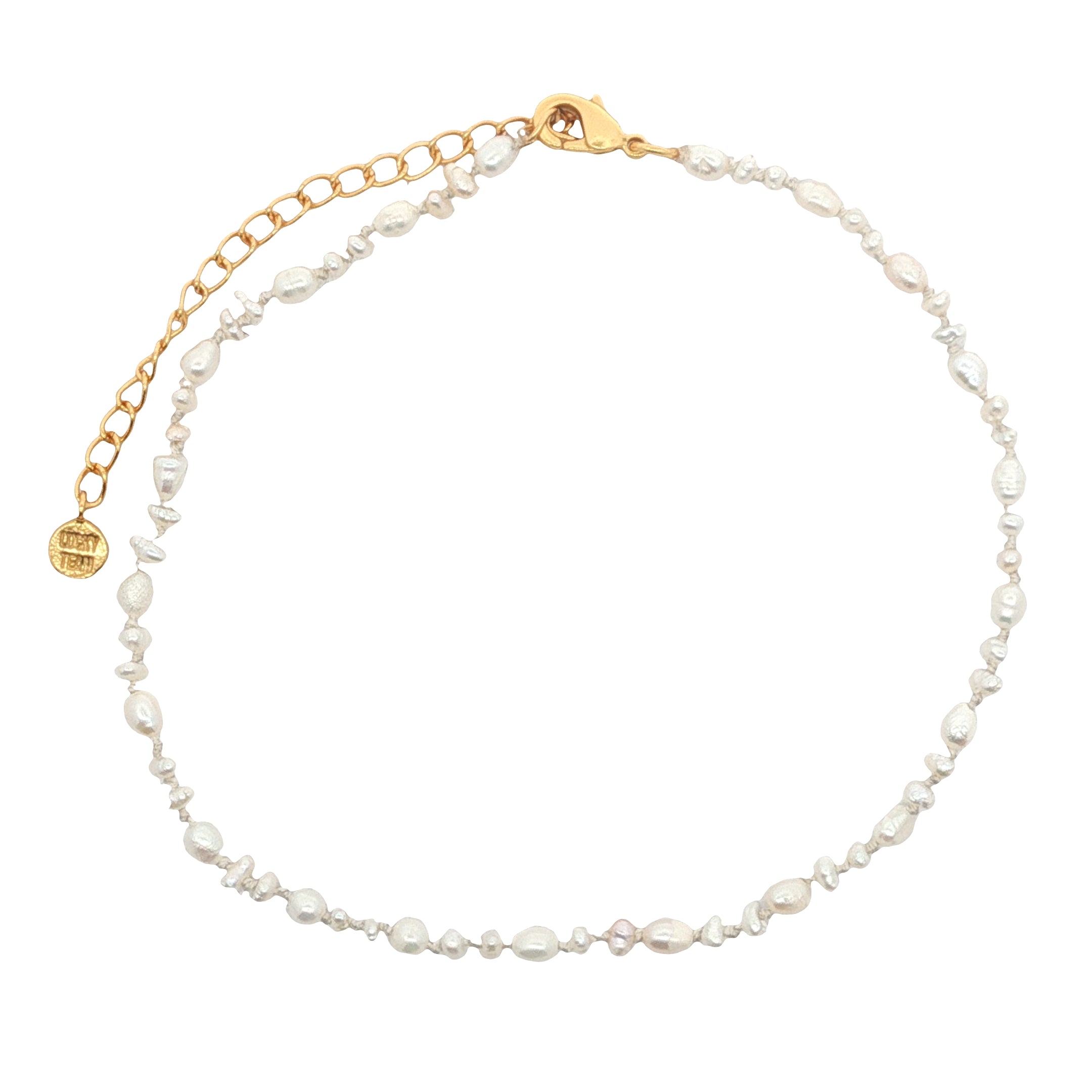Chaine de cheville dorée petites perles de culture et fil blanc