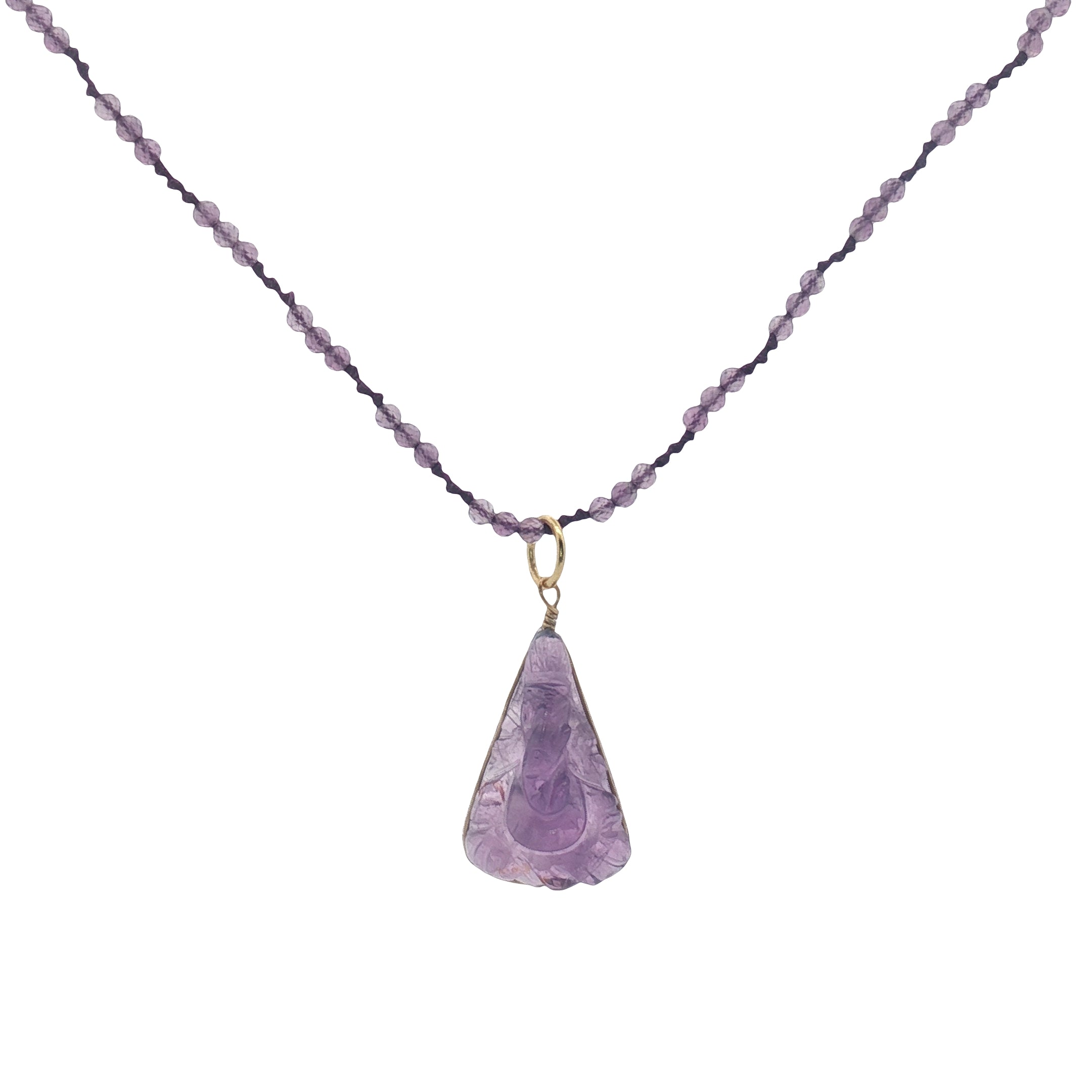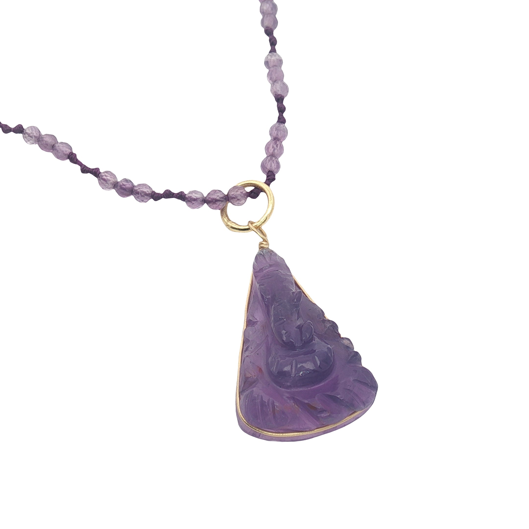 Collier doré améthyste Ganesh taillée dans l'améthyste 60 cm