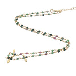 Collier chaine rosary en laiton doré à l'or fin 18k avec rubis zoisite facetté