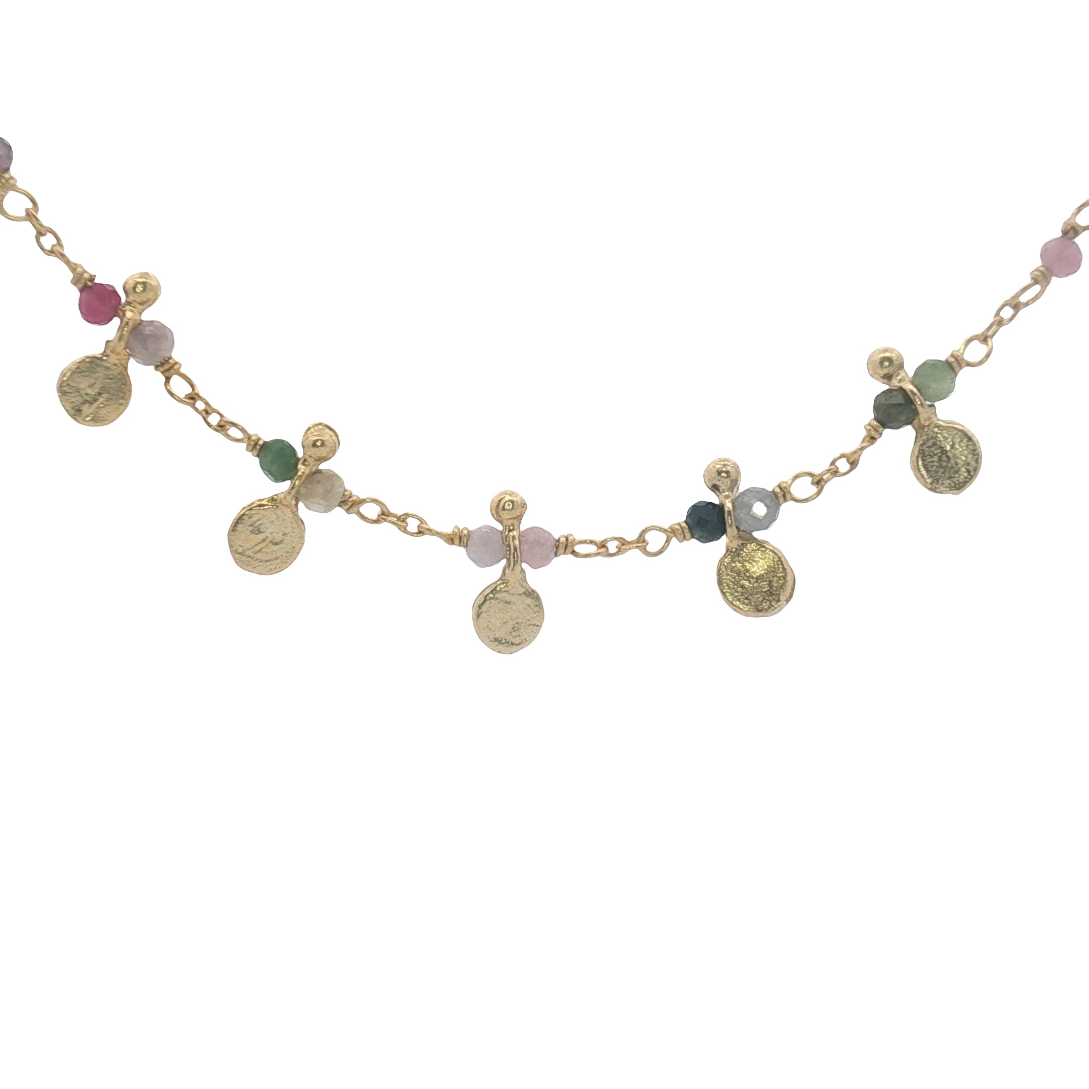 Collier chaine rosary en laiton doré à l'or fin 18k avec tourmaline facettée