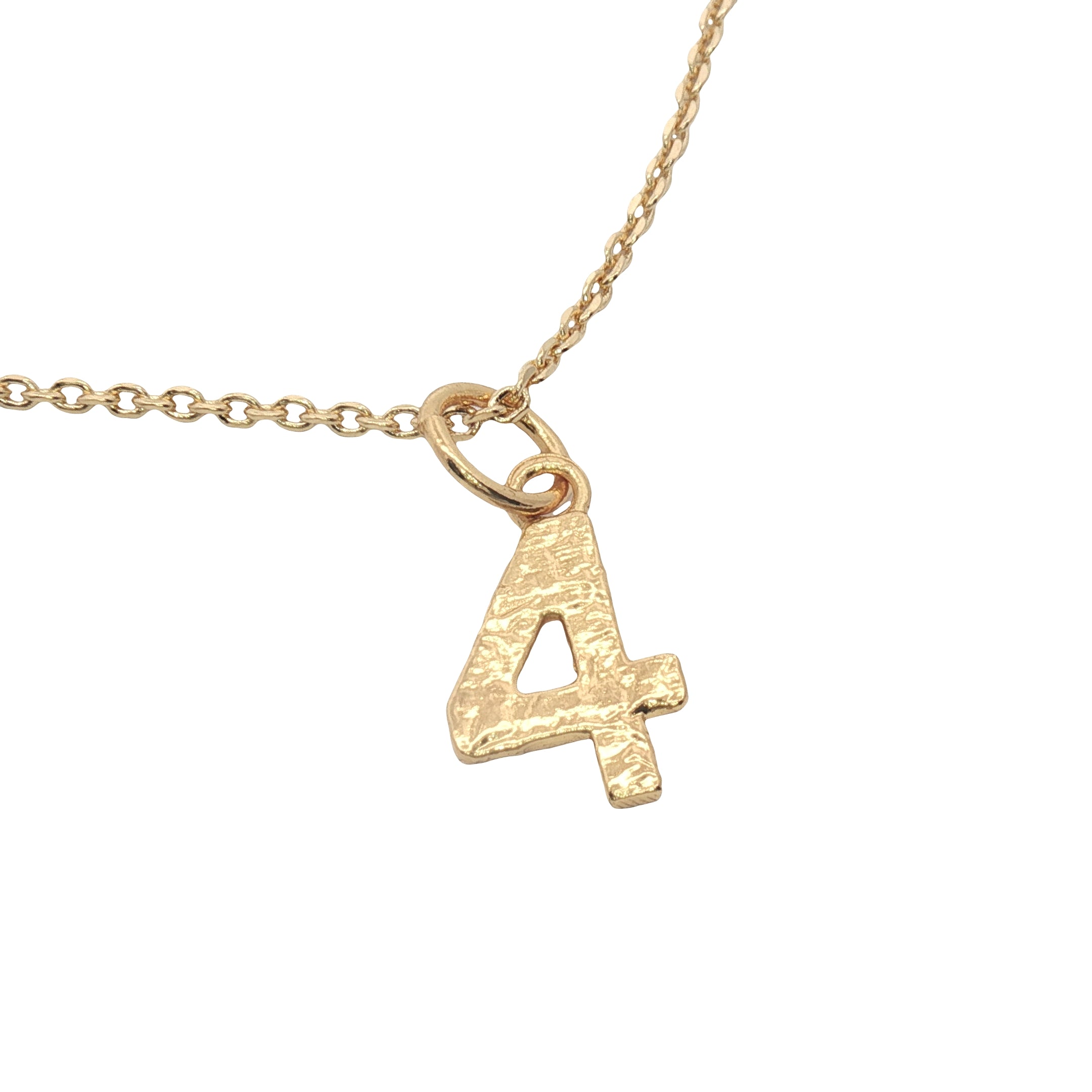 Hammered number gold necklace