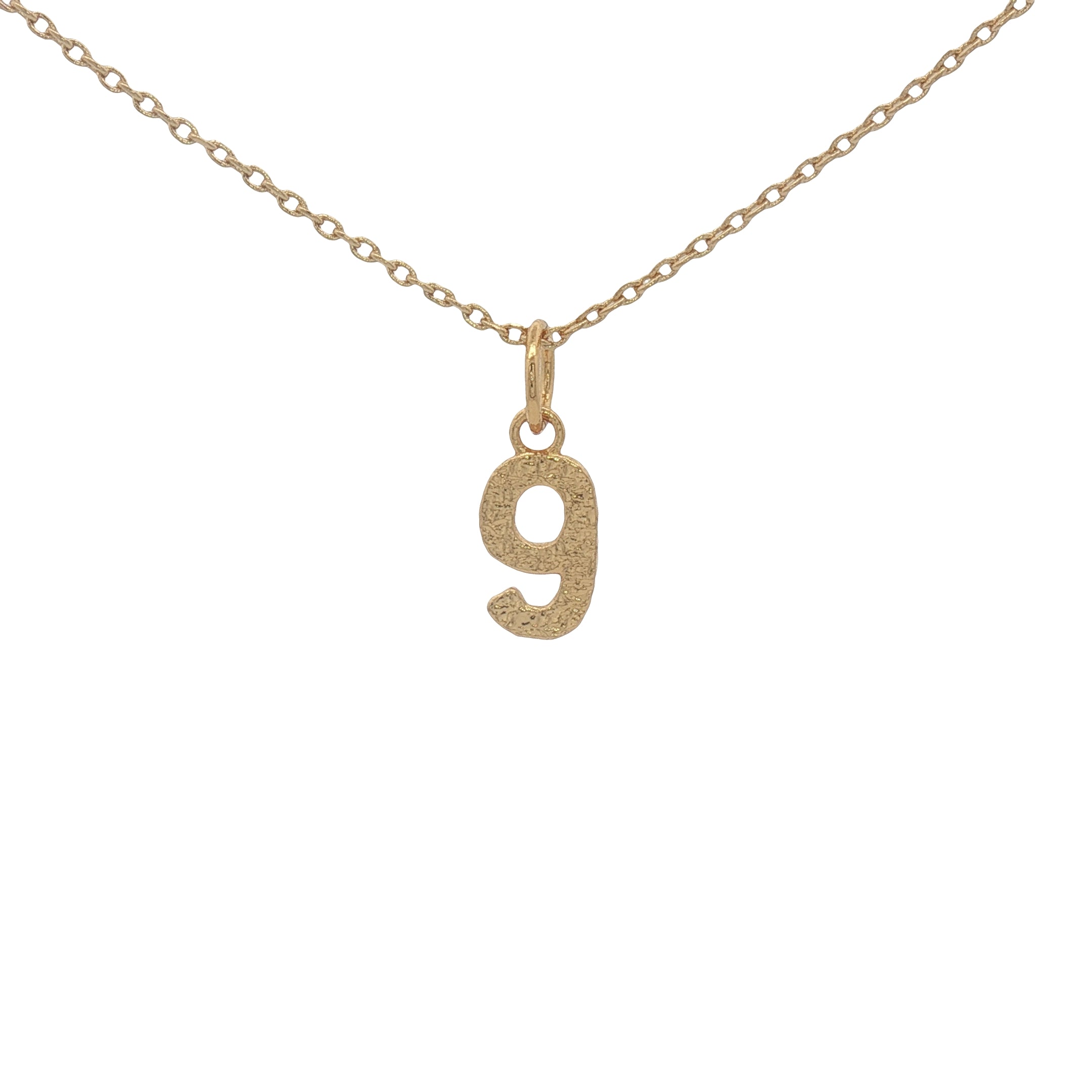 Hammered number gold necklace