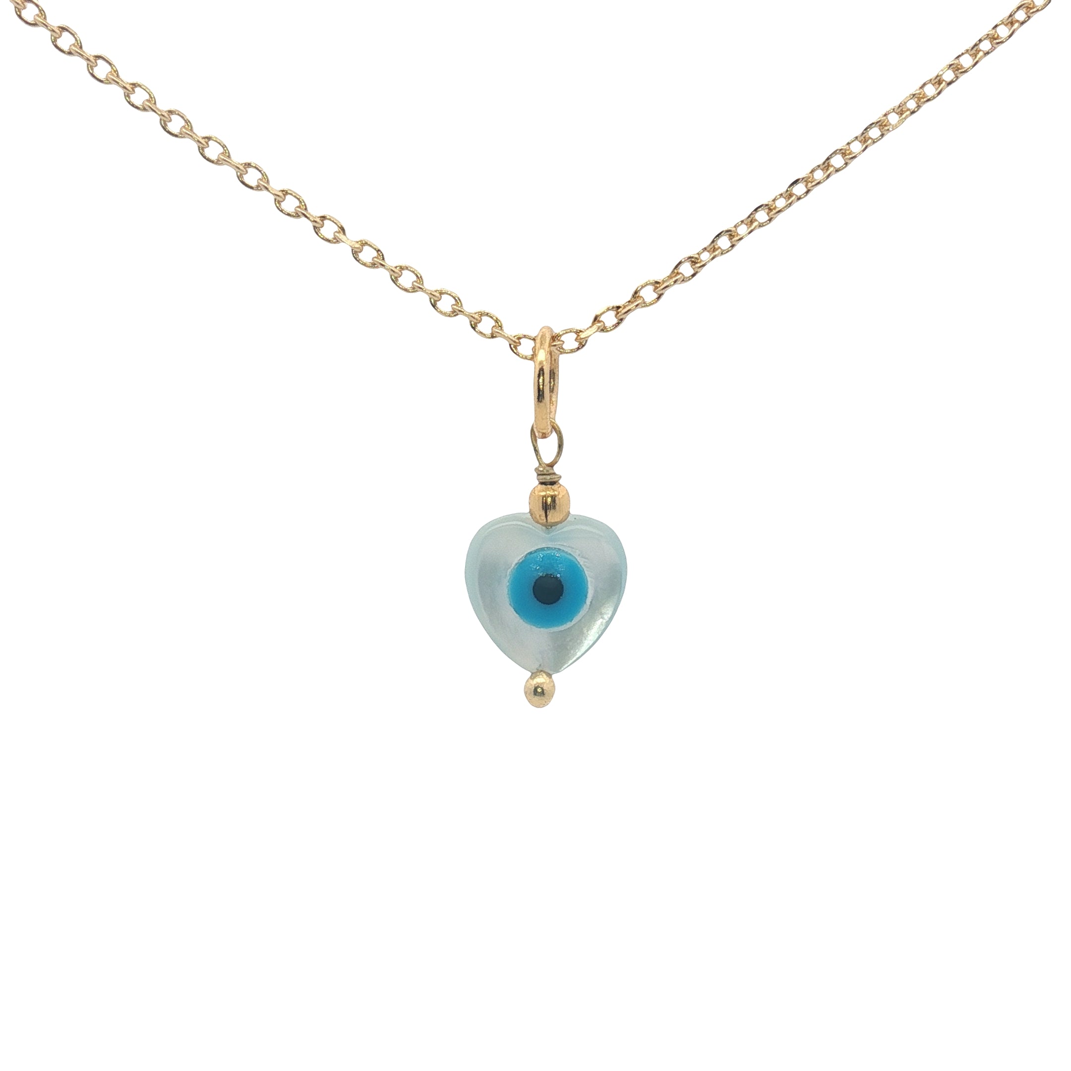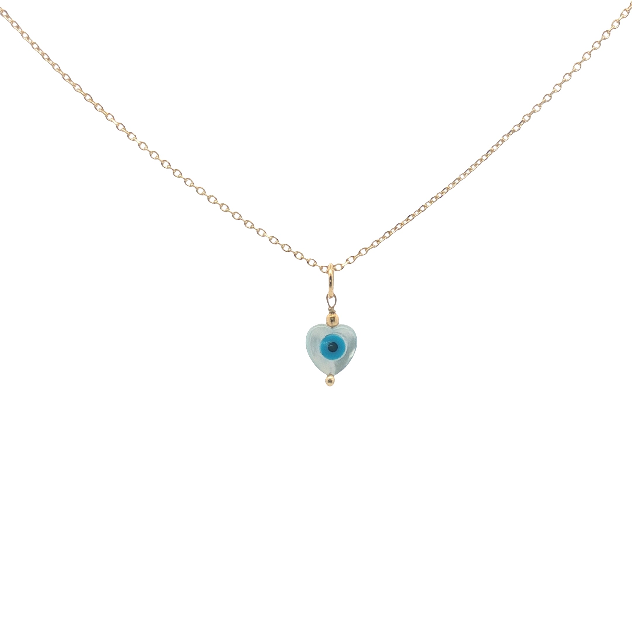 Collier doré coeur en nacre avec oeil et perle dorée 42 cm