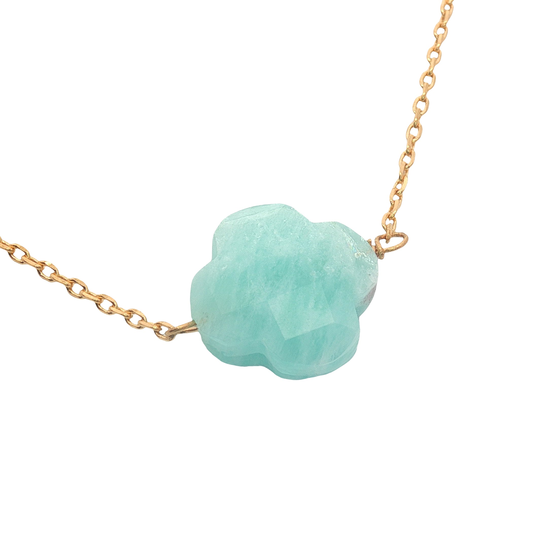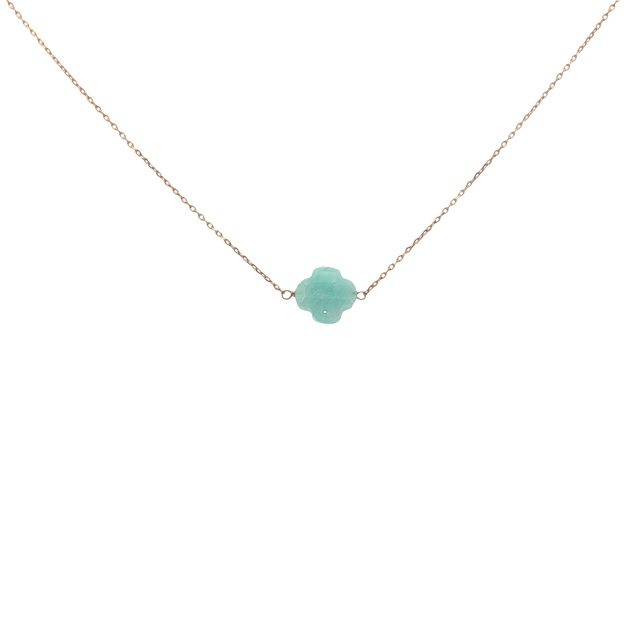 Gold clover necklace with faceted stone