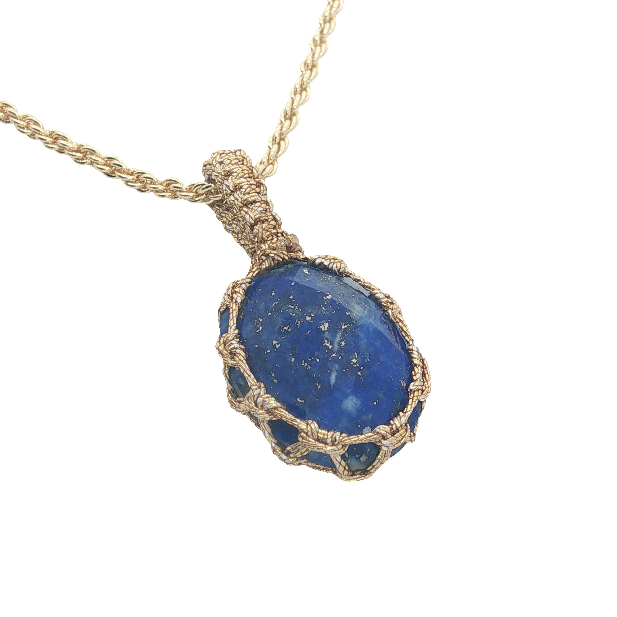 Un fil doré entoure et tisse la pierre ainsi que la grande bélière