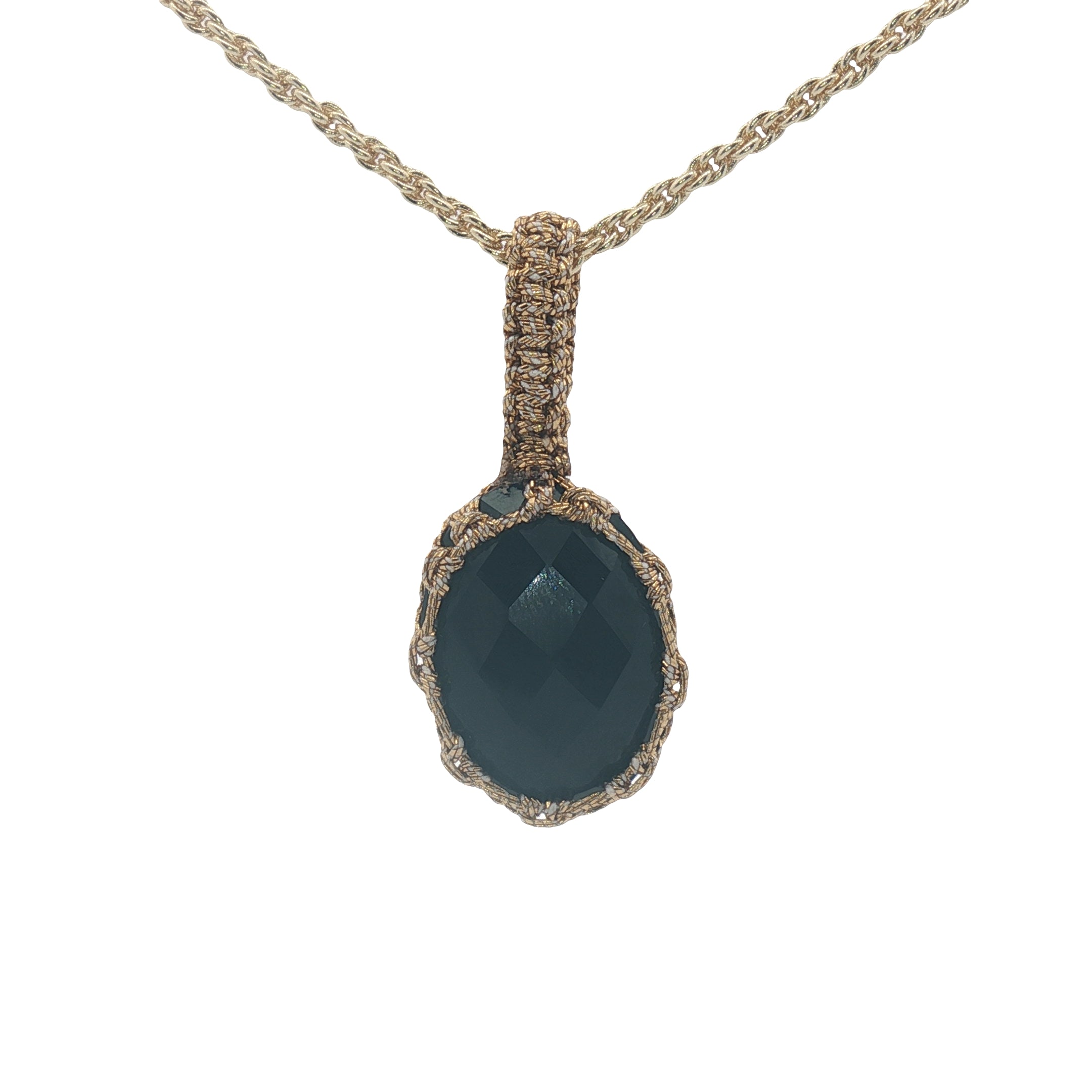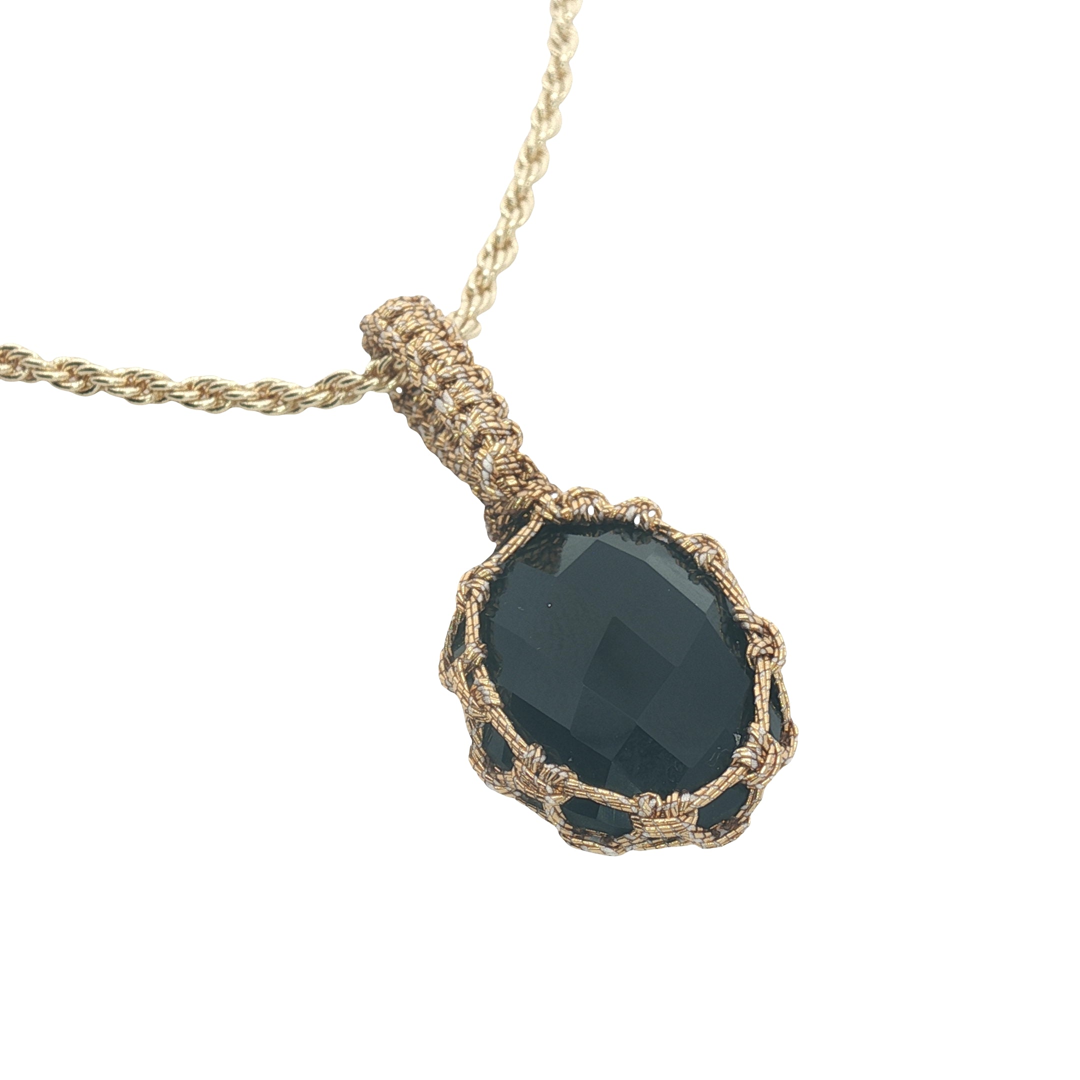 Un fil doré entoure et tisse la pierre ainsi que la grande bélière