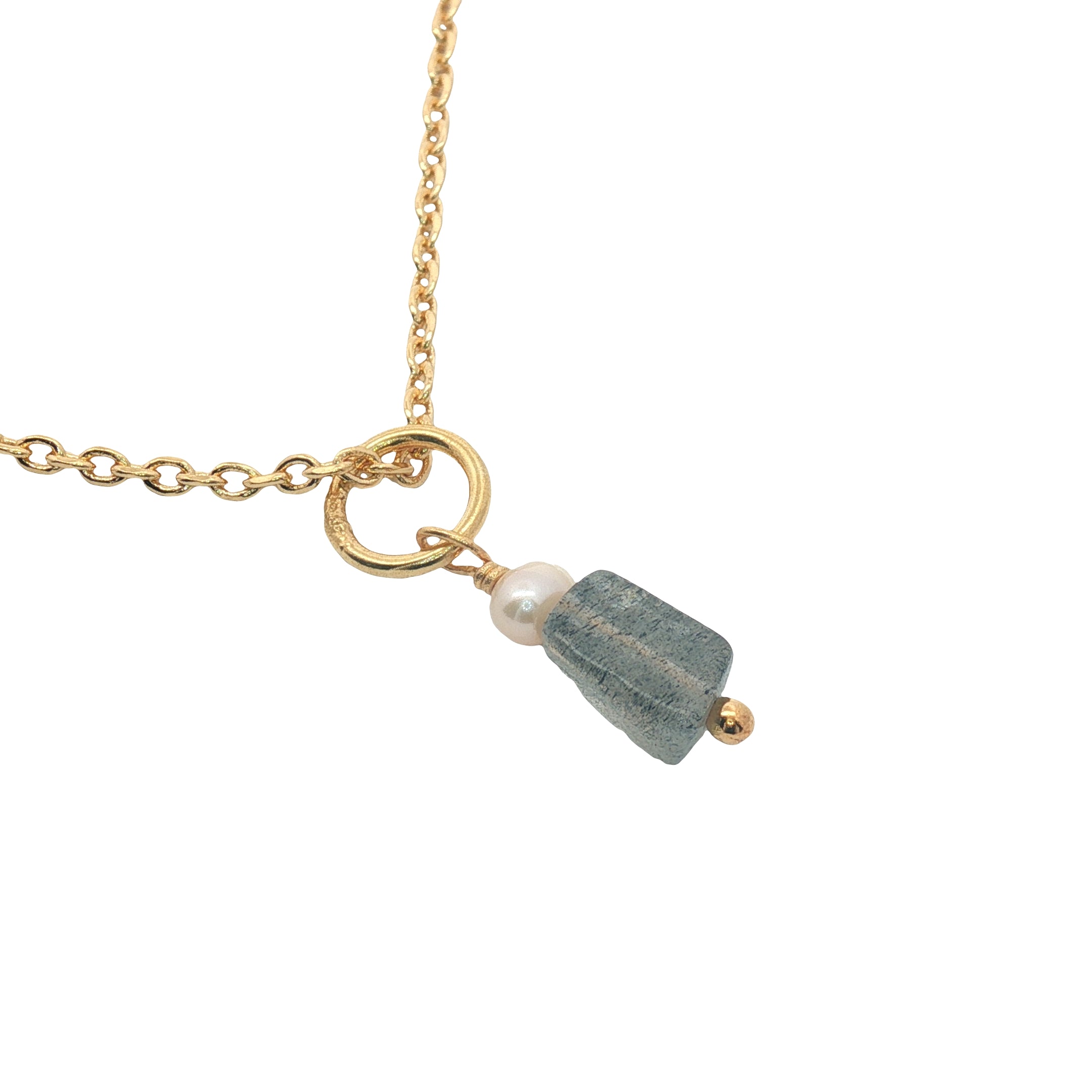 Collier doré labradorite et perle de culture 42 cm