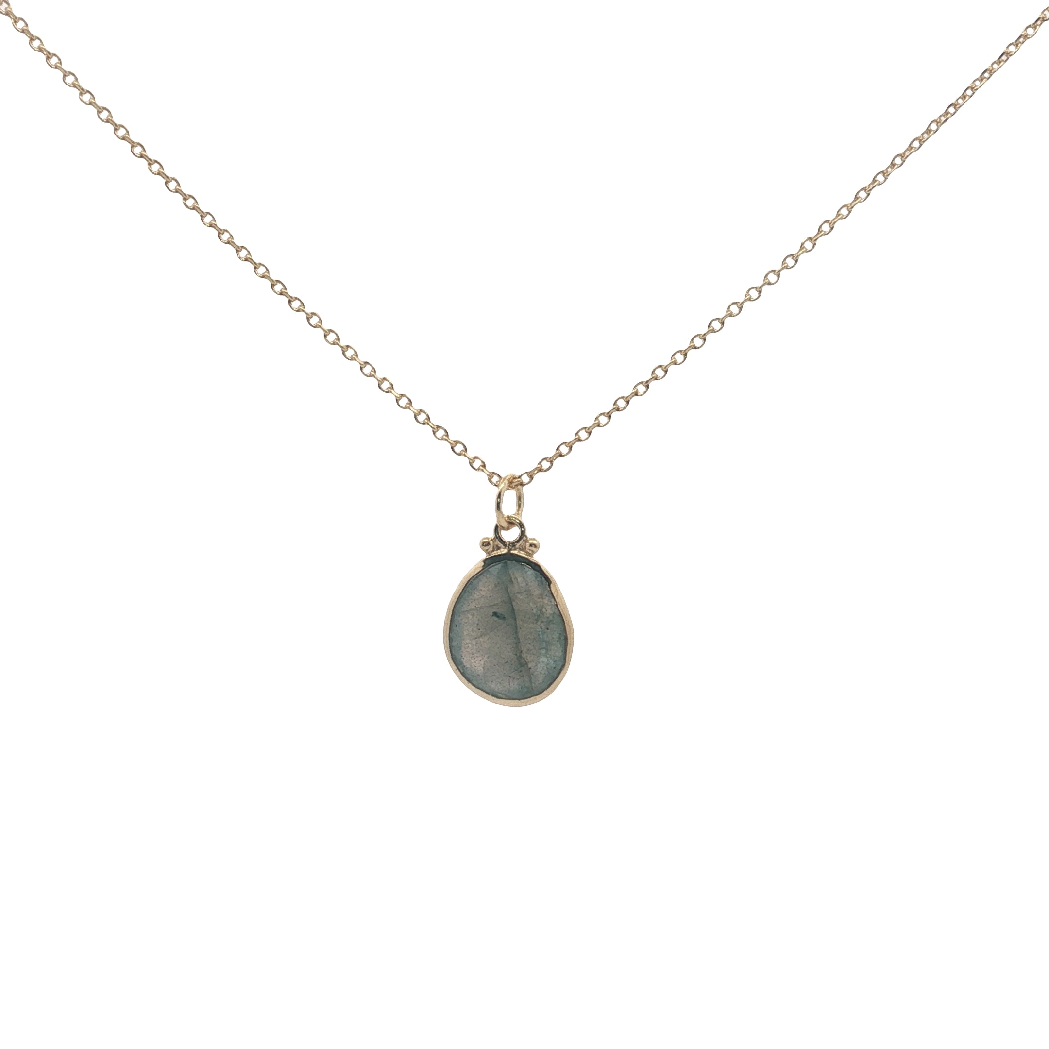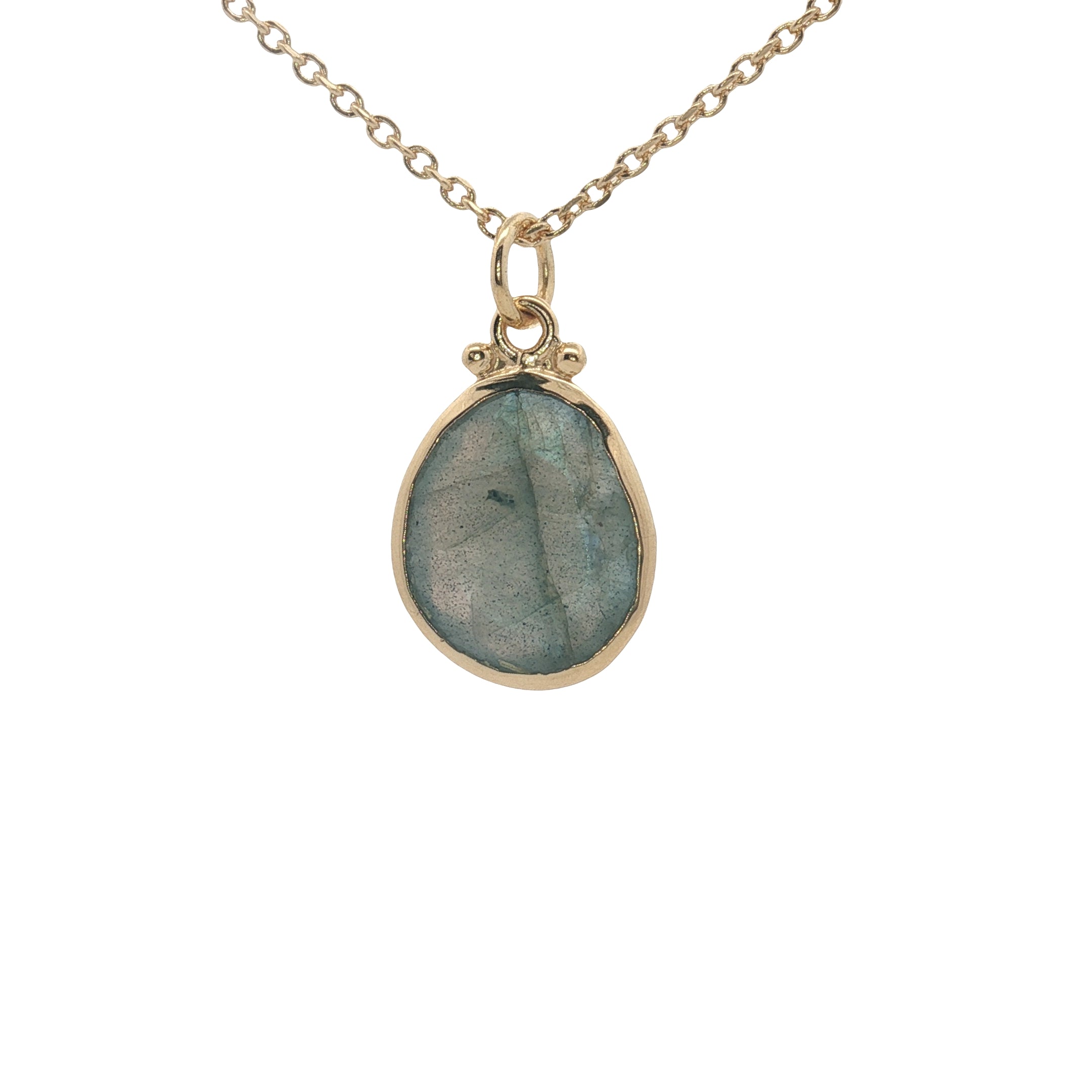 Pendentif labradorite ovale cerclé de doré : 15 mm x 11 mm