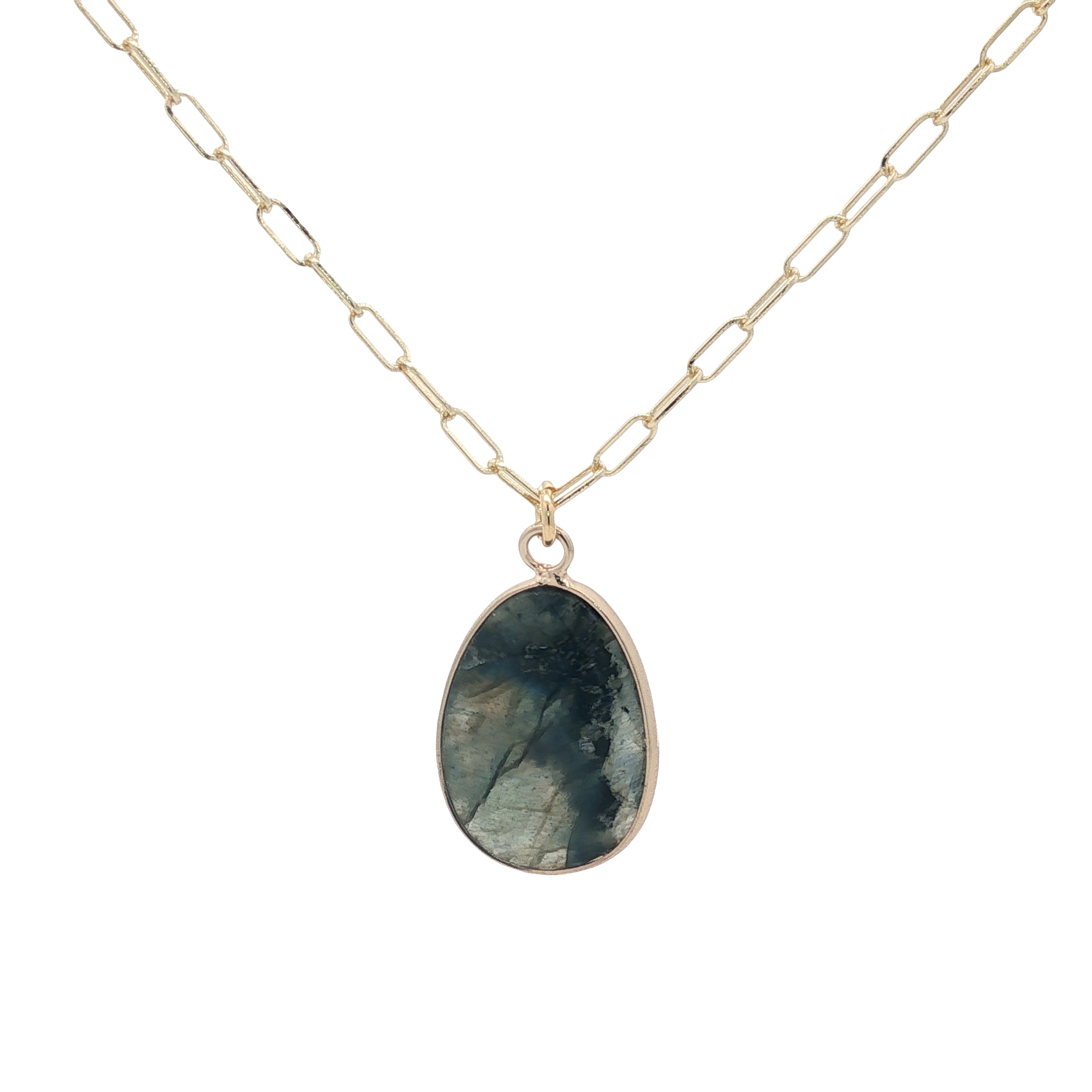 Collier doré labradorite ovale facettée 50 cm
