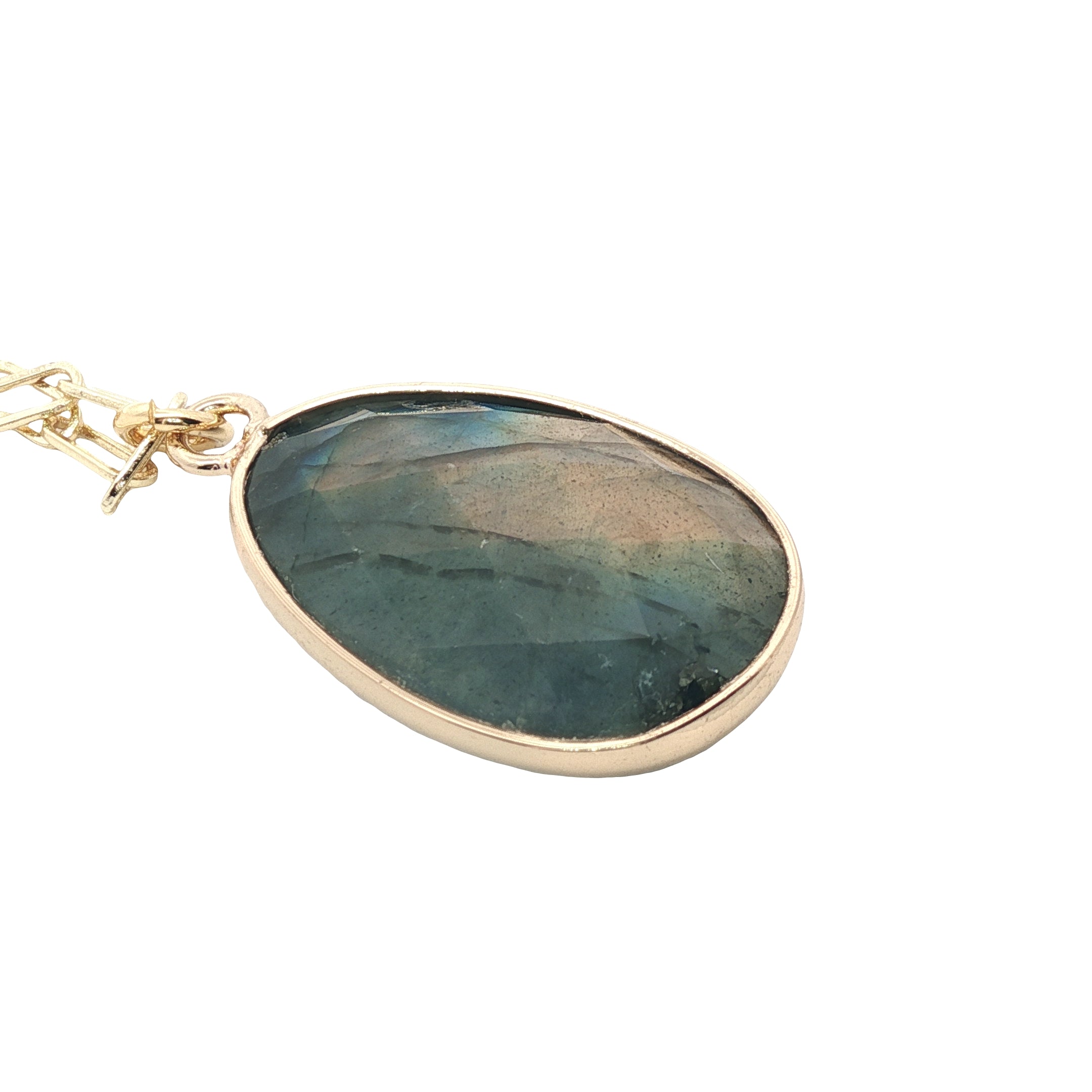 Pendentif labradorite ovale facettée serti doré : 23 mm x 16 mm