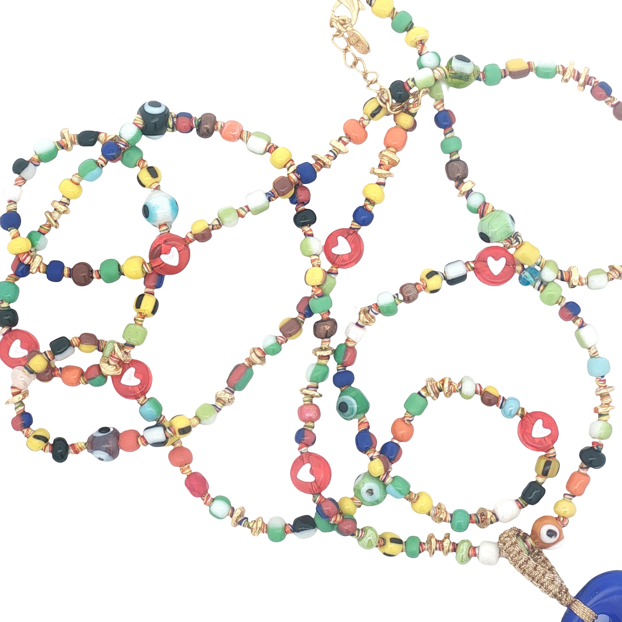 Collier doré main de Fatma verre soufflé perles colorées 90 cm
