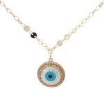 Collier doré médaille avec oeil en nacre et zircons 50 cm