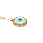 Pendentif médaille ronde avec oeil en nacre entouré de zircons blancs : 19 mm