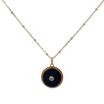 Gold necklace with stone and zircon medal "every day more" on the back