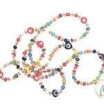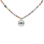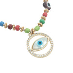 Collier doré médaillon oeil en nacre et zircons perles colorées 75 cm