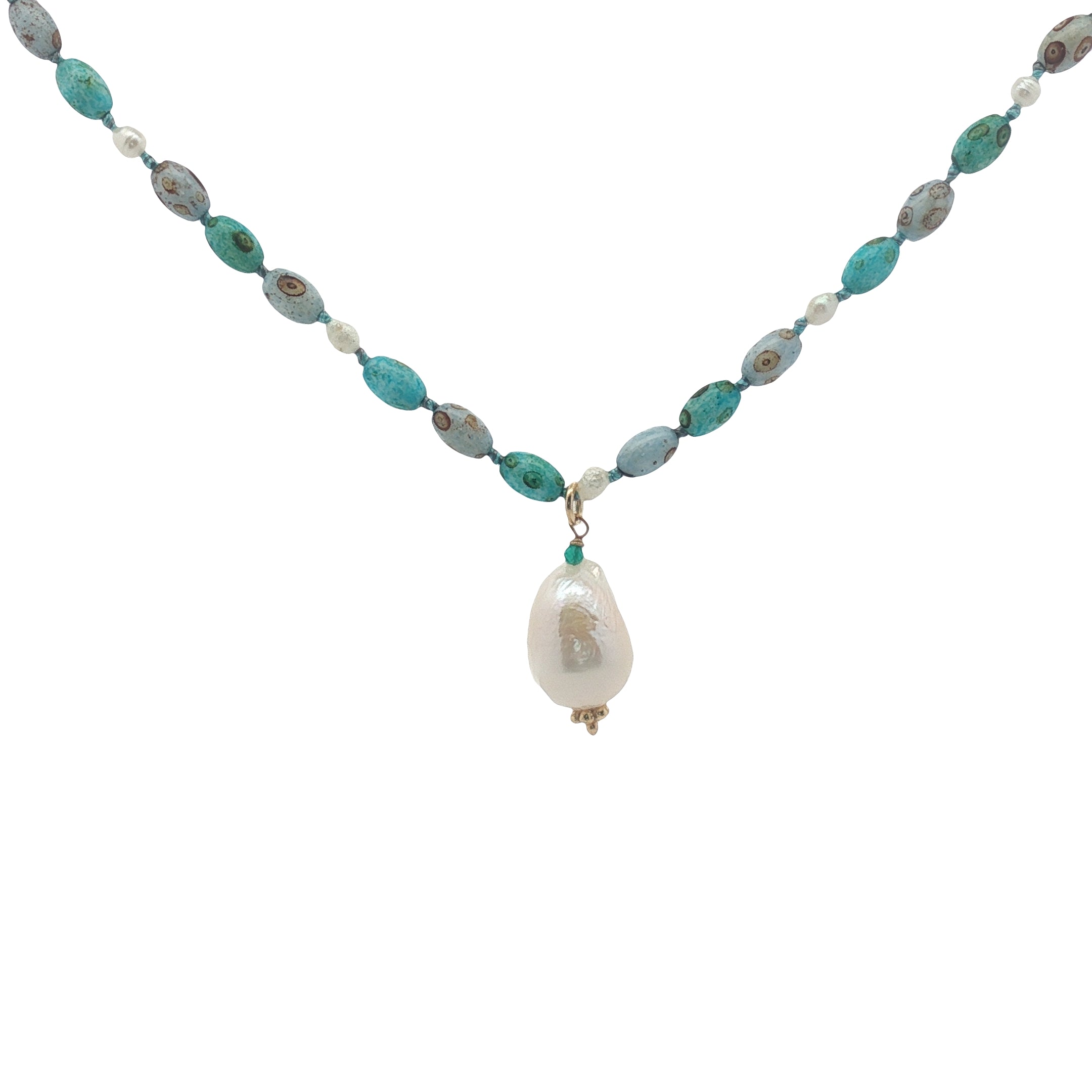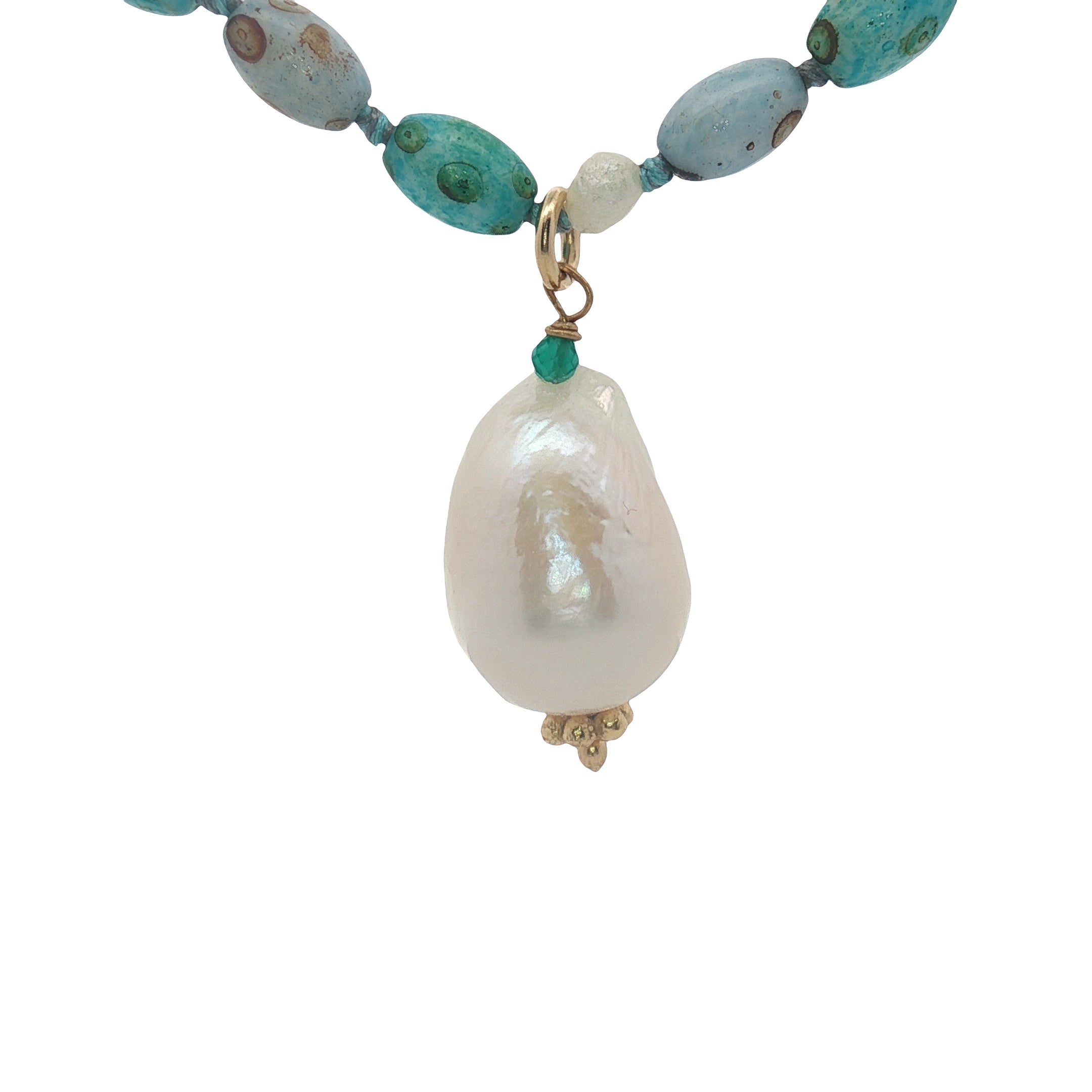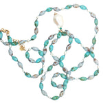 Collier doré multi turquoise et perles de culture 75 cm