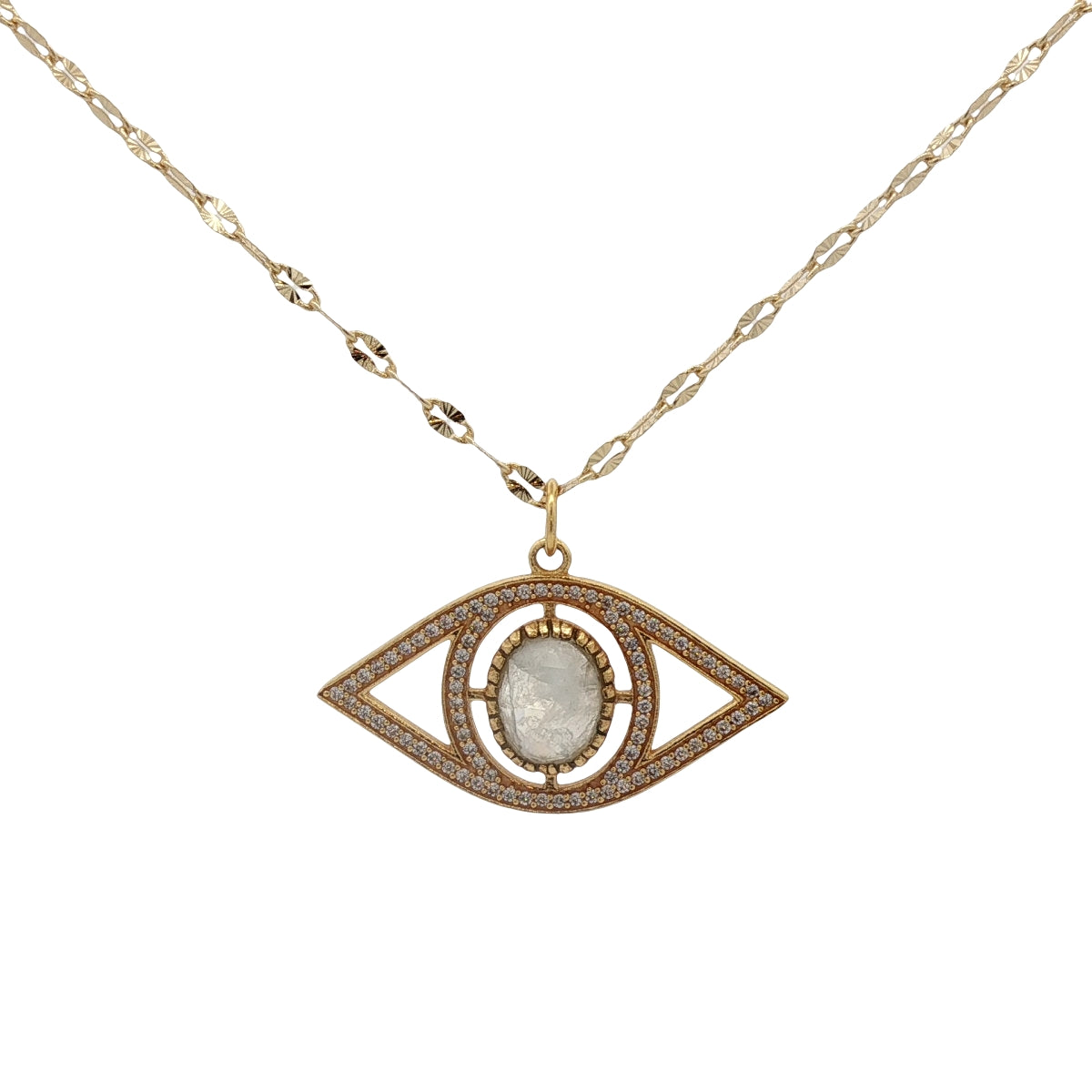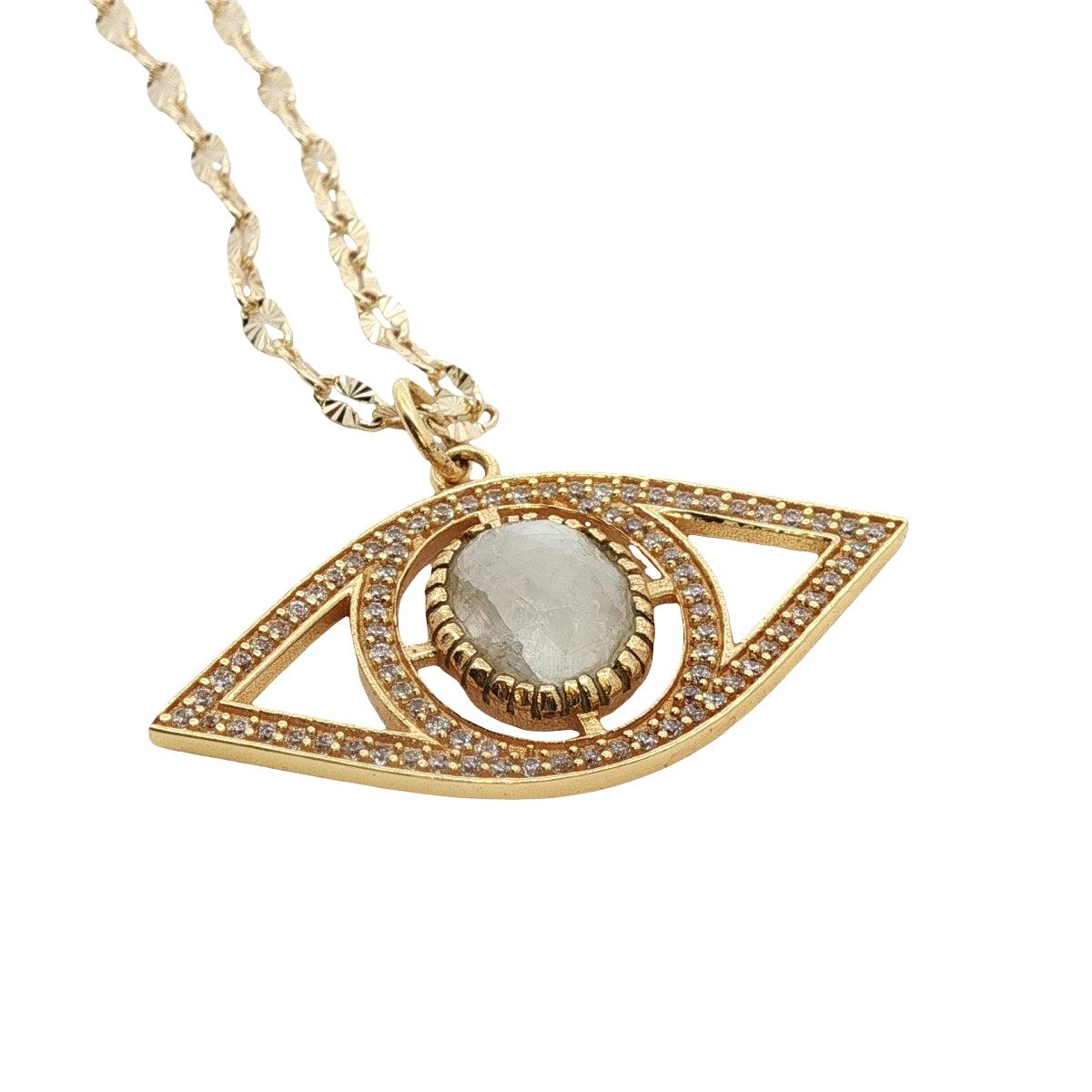Collier doré Oeil ajouré pierre de lune et zircons 42 cm