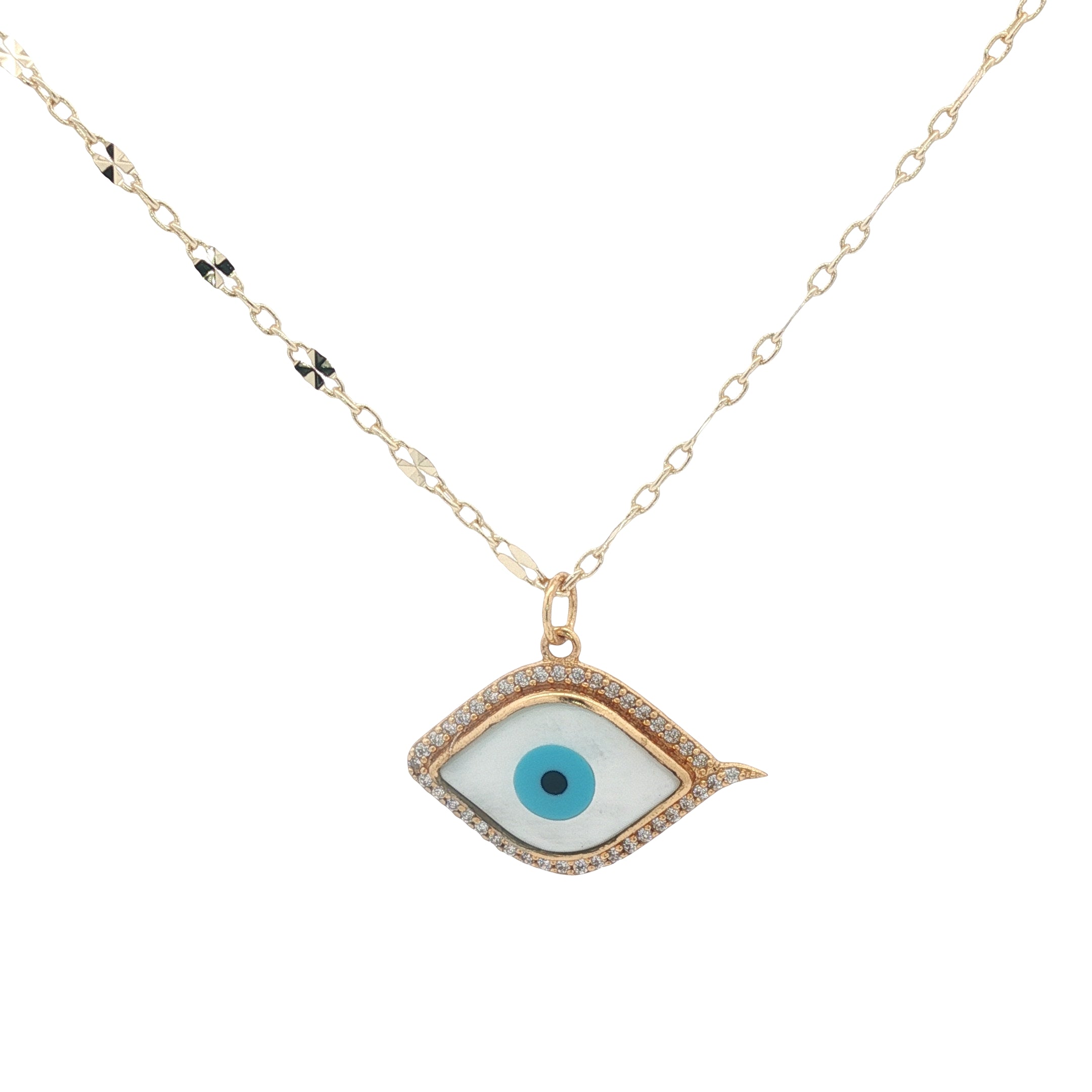 Collier doré oeil en nacre avec zircons blancs 50 cm