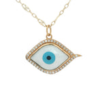 Pendentif oeil en nacre orné de zircons blancs : 17 mm x 26 mm