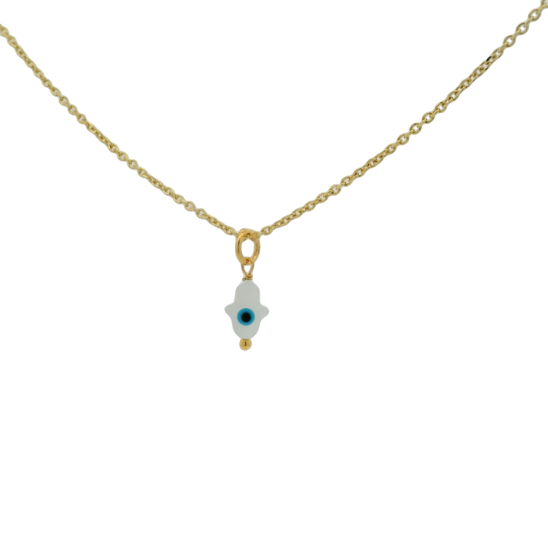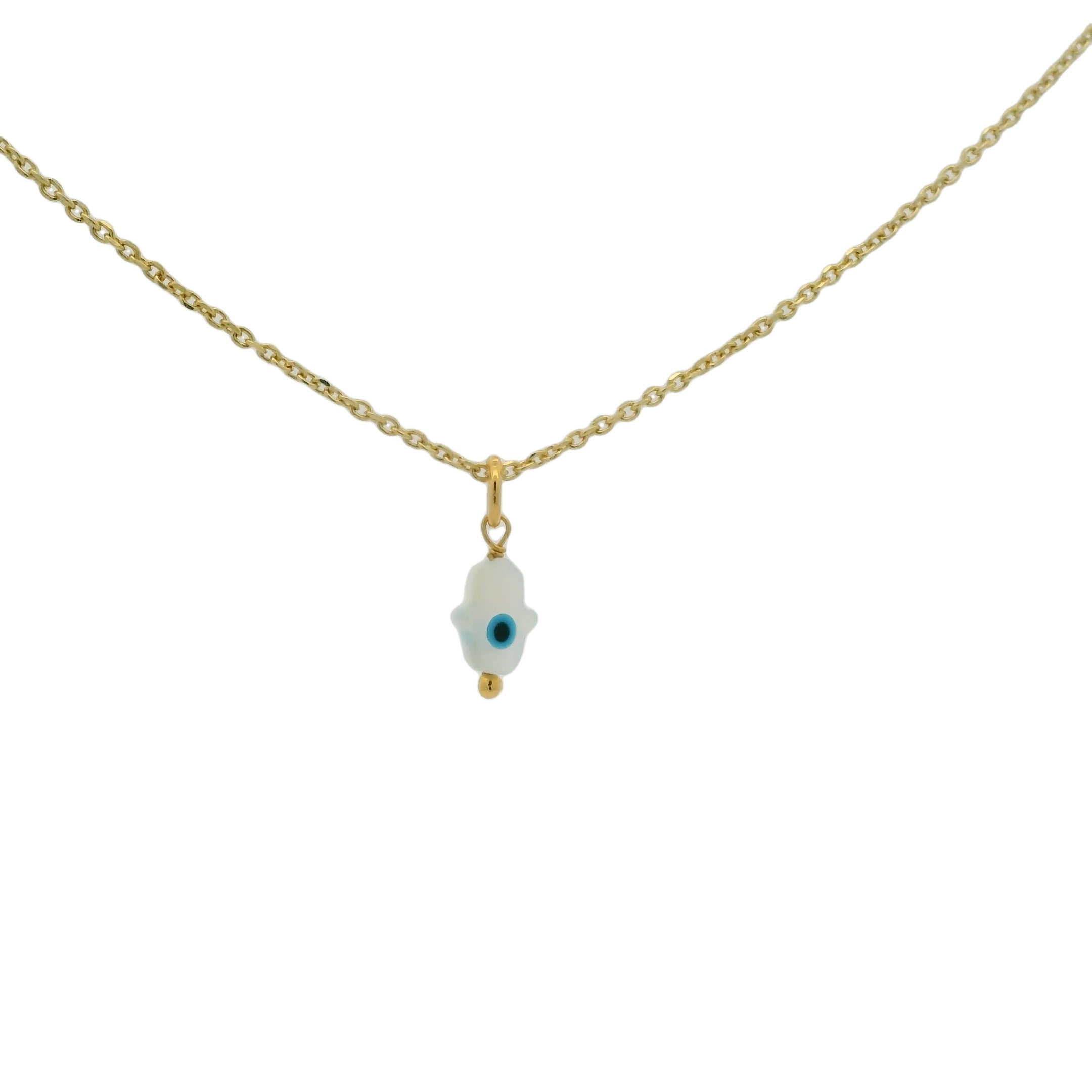Collier doré oeil nacre main de fatma 42 cm