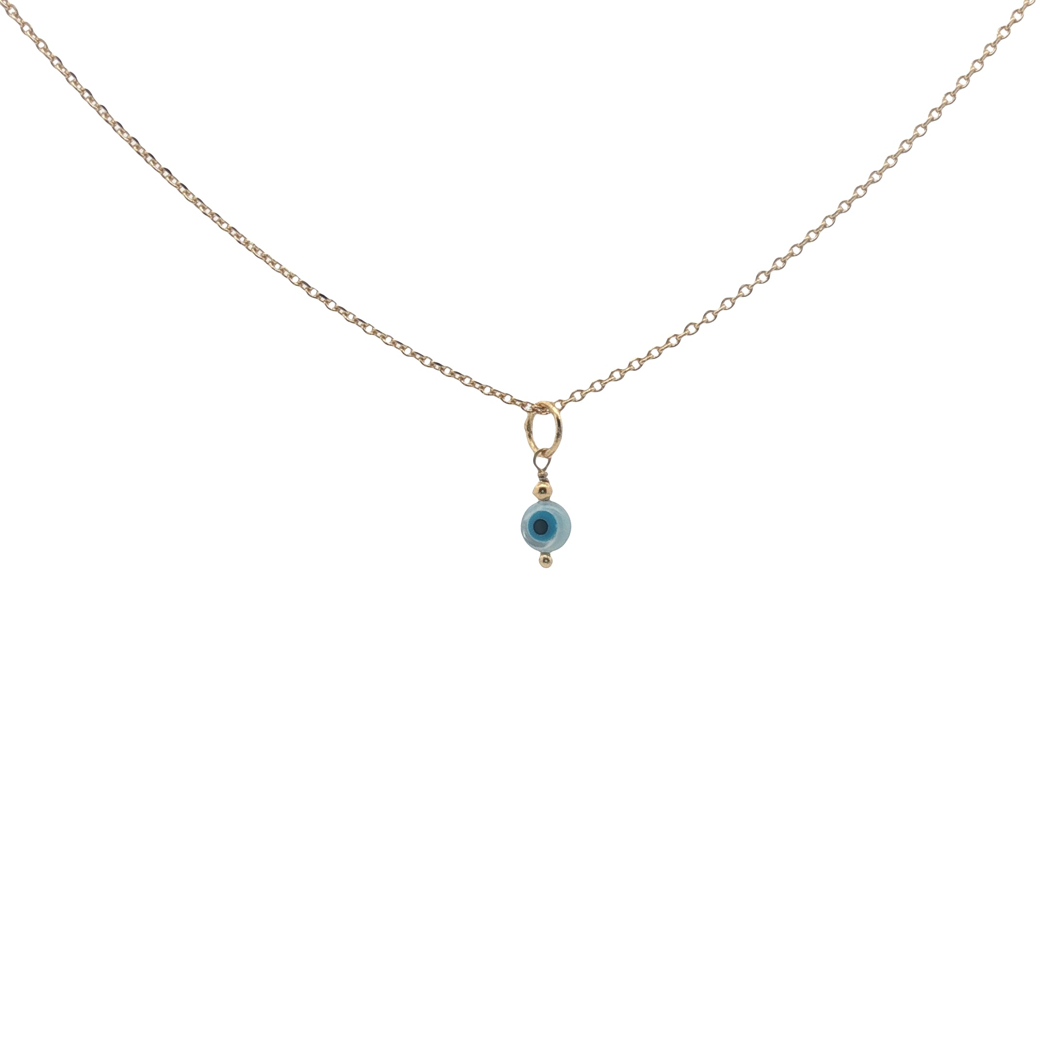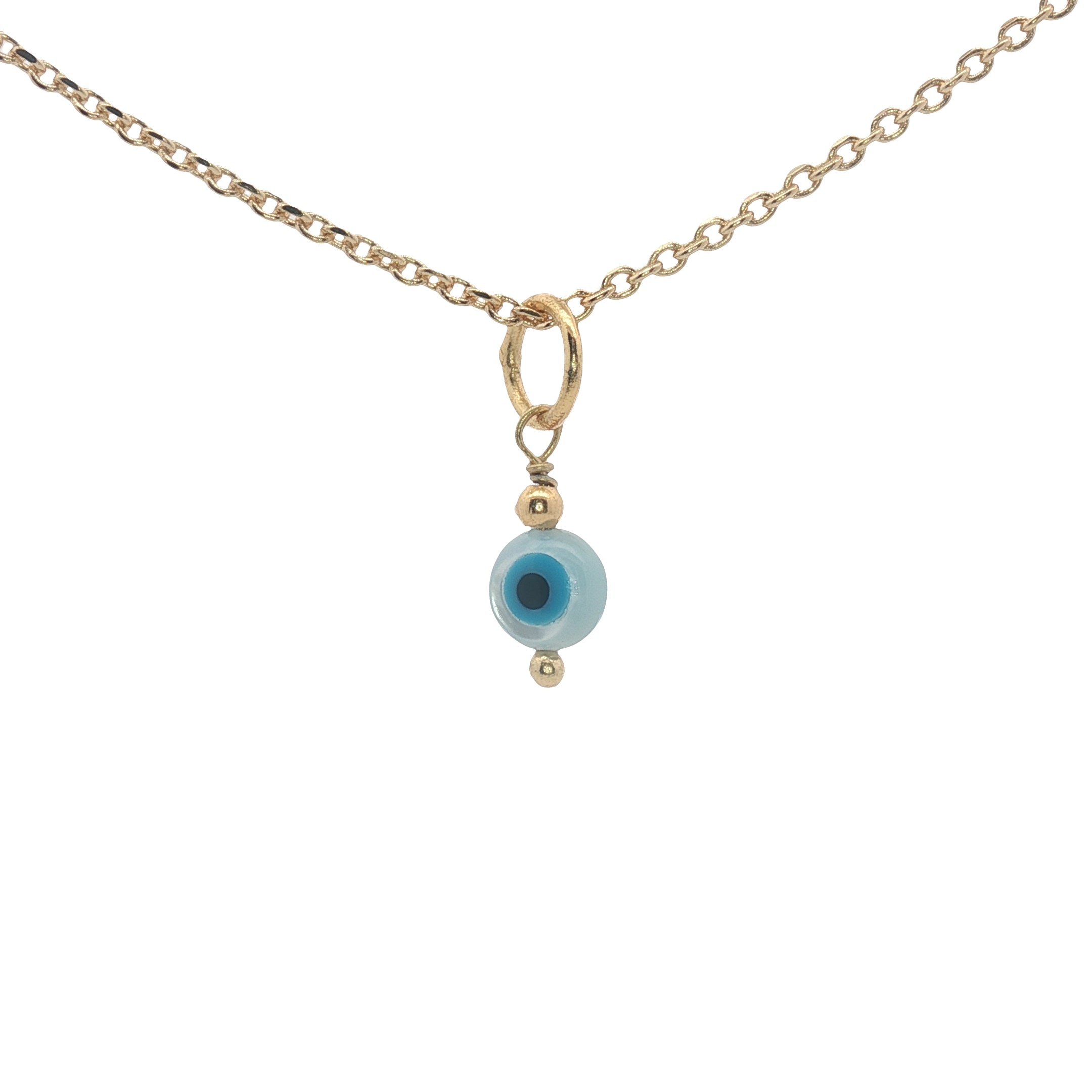 Pendentif oeil rond en nacre orné d'une petite perle dorée : 5 mm