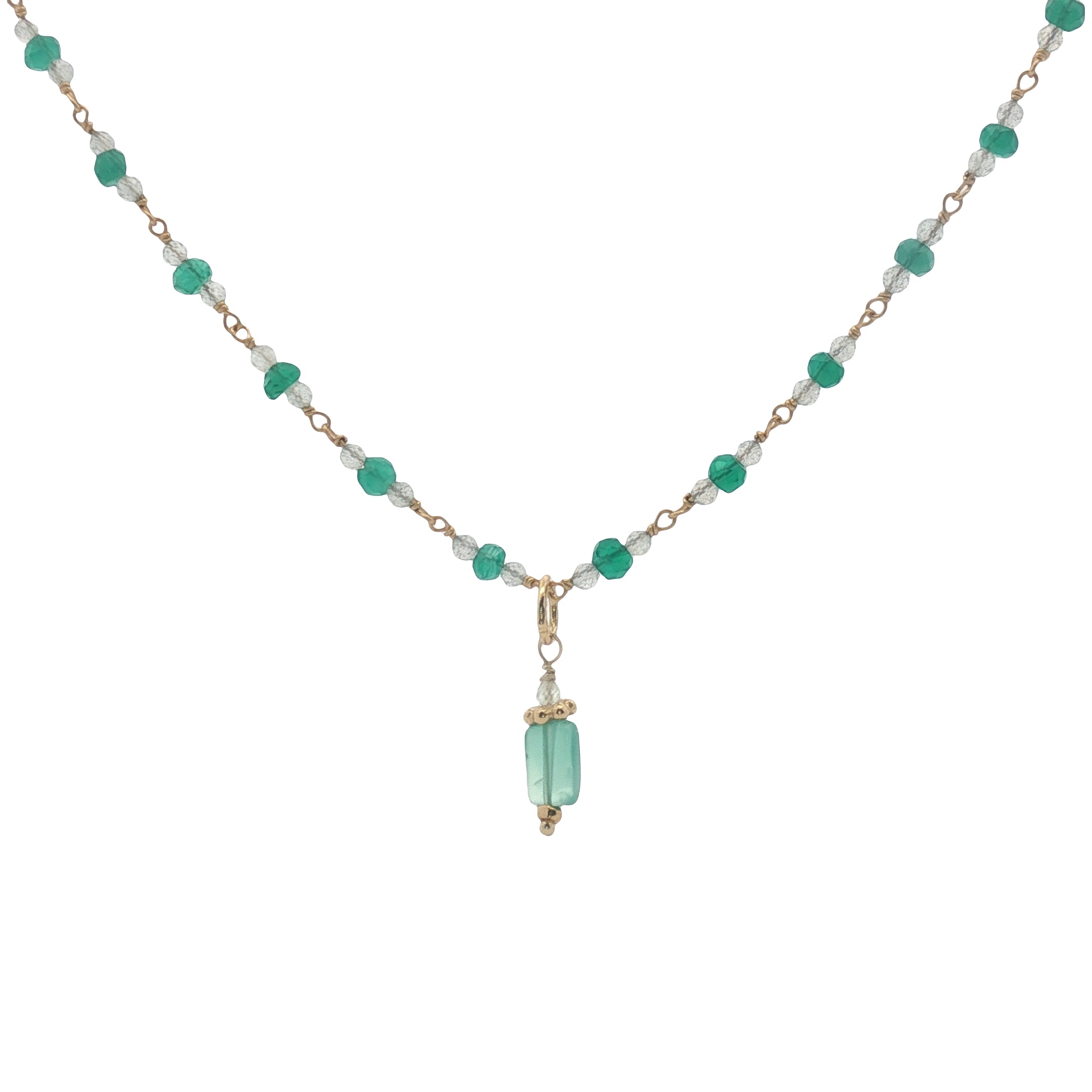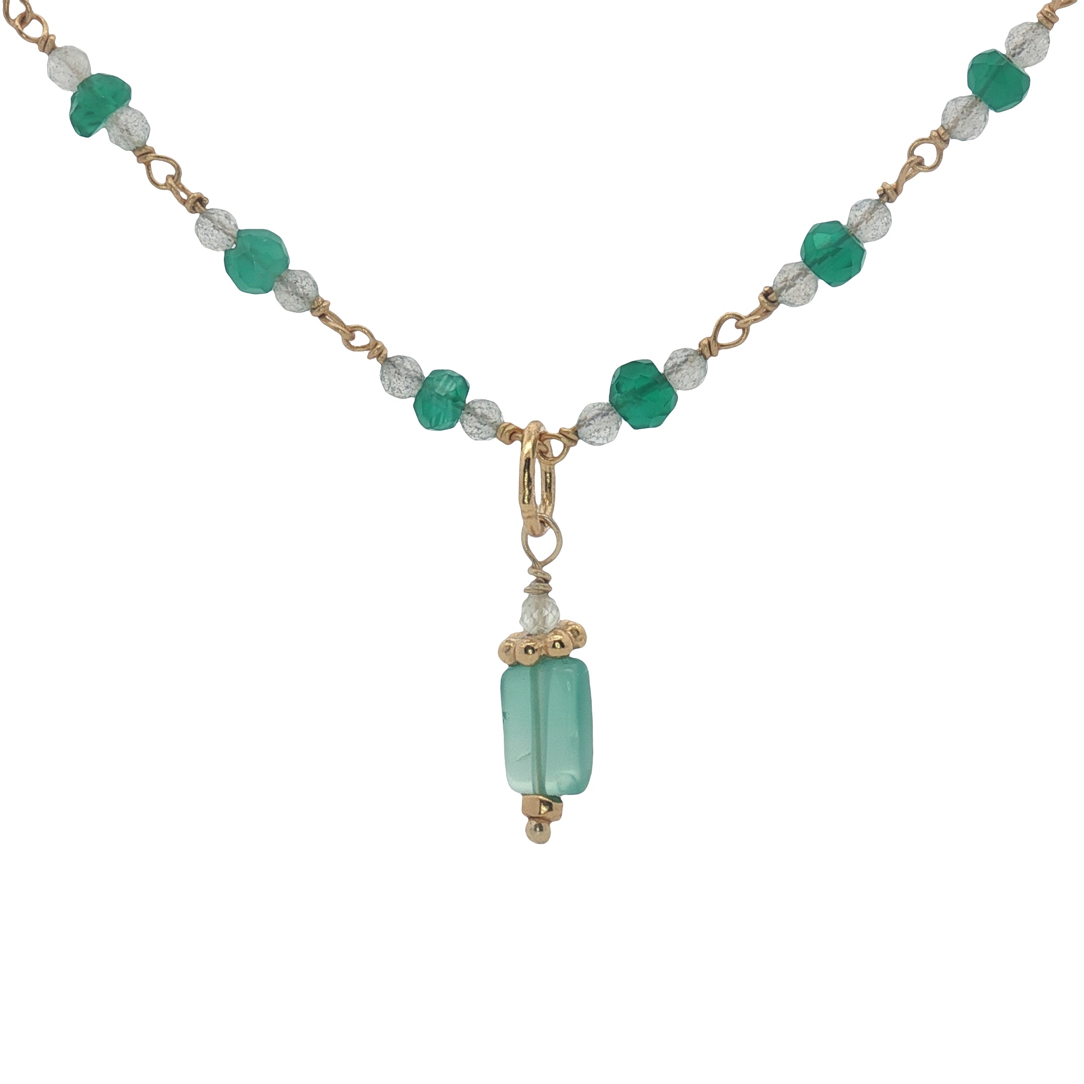 Pendentif onyx verte rectangulaire ornée d'une petite prehnite : 13 mm x 4 mm