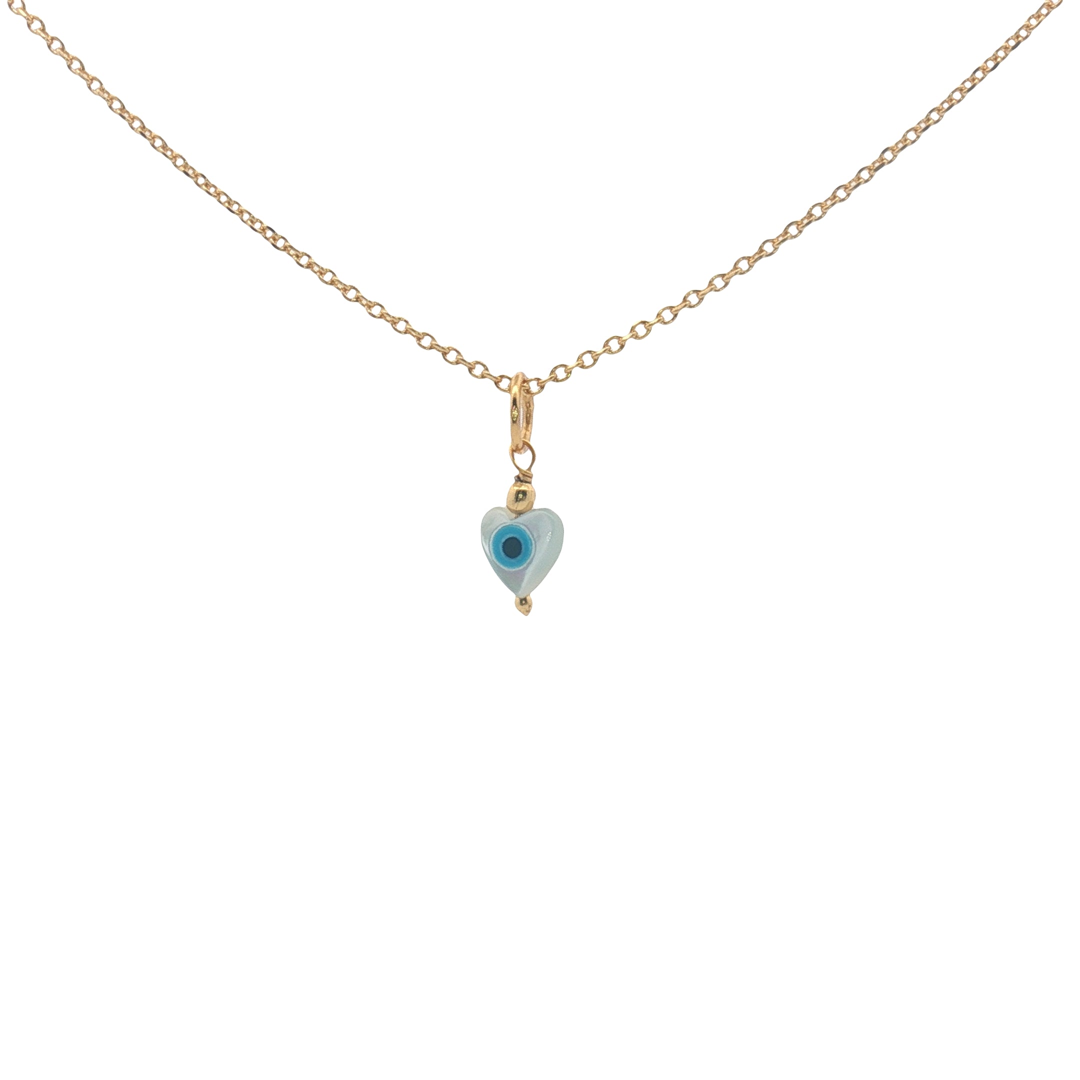Collier doré petit coeur en nacre avec oeil perle dorée 42 cm