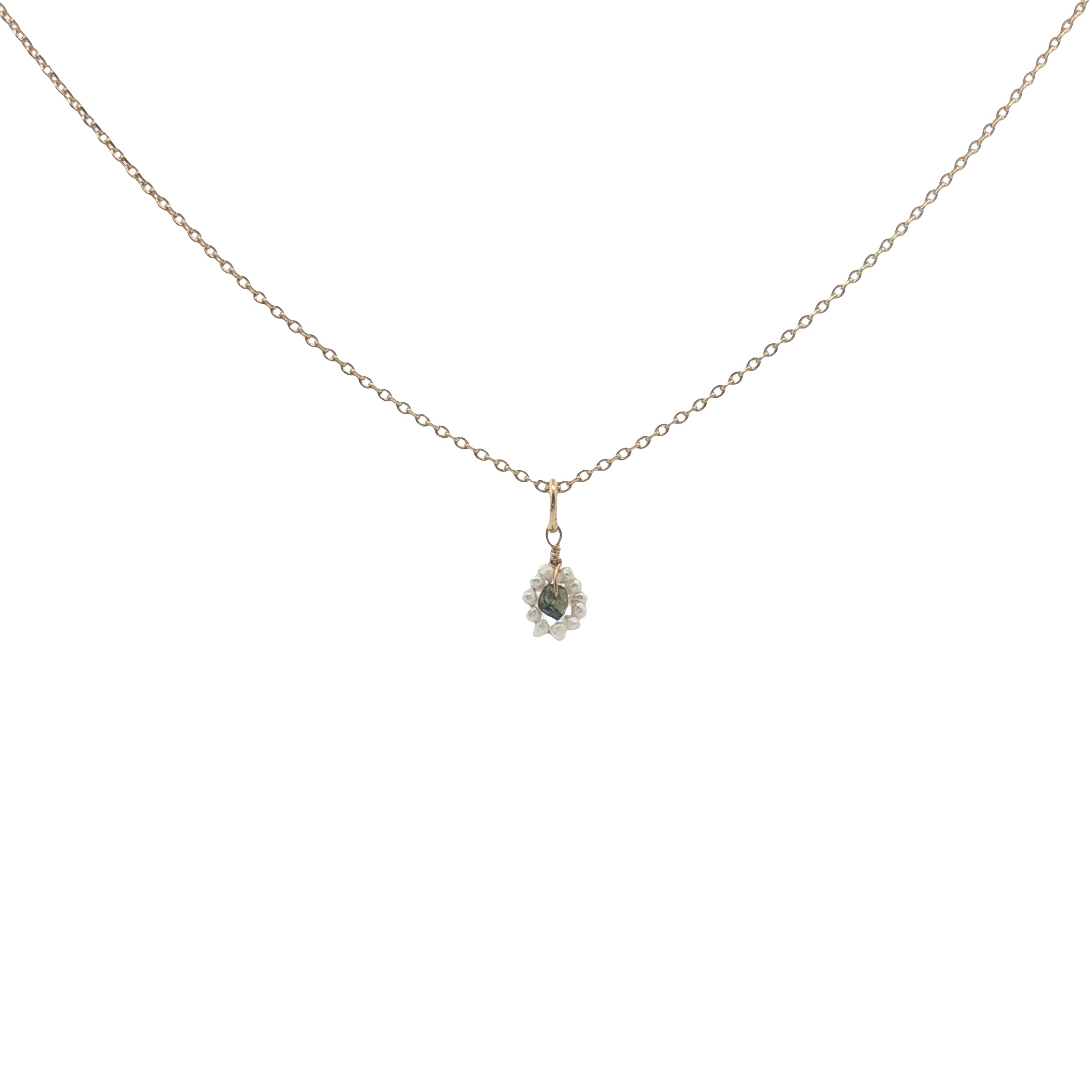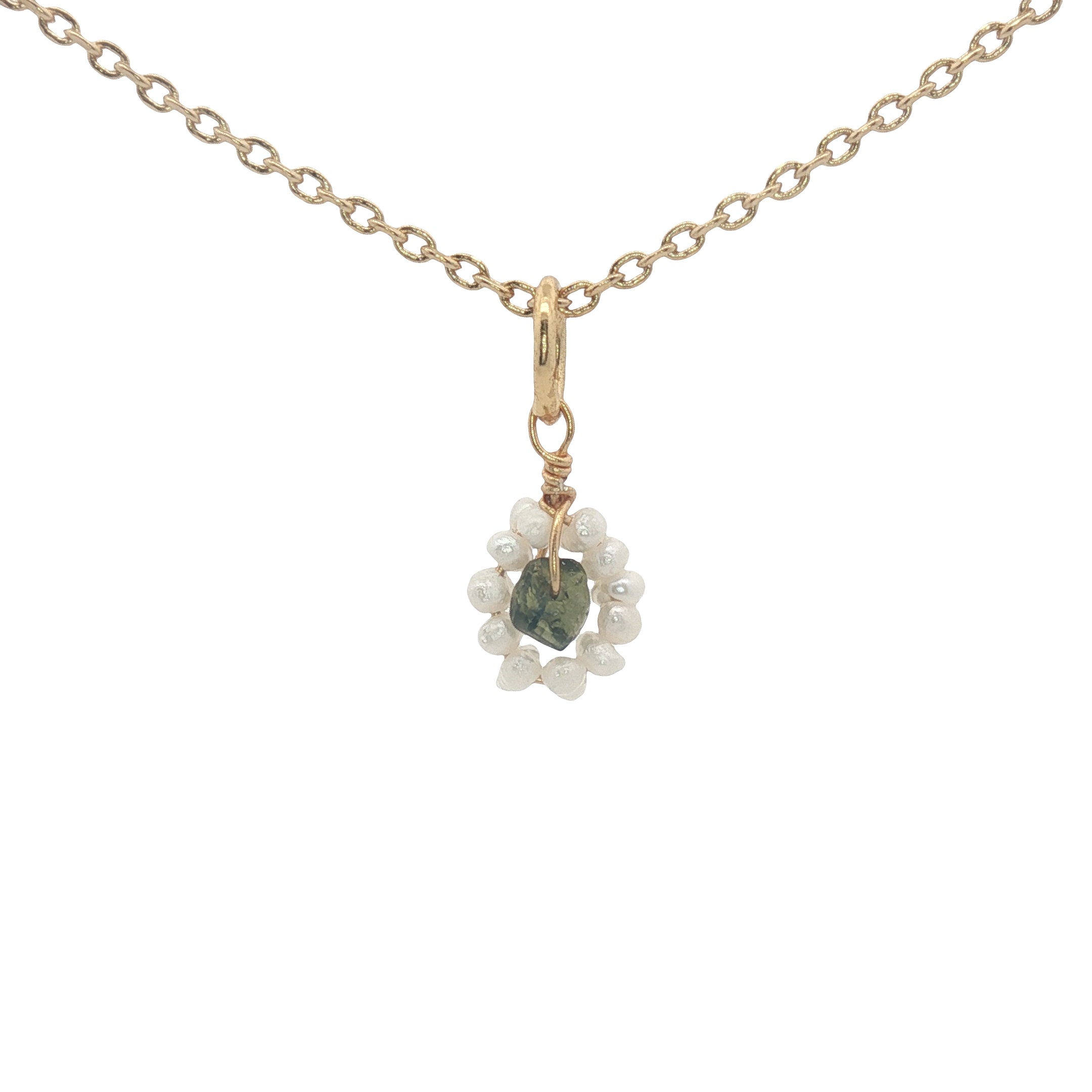 Pendentif petite fleur en tourmaline et perles de culture : 7 mm
