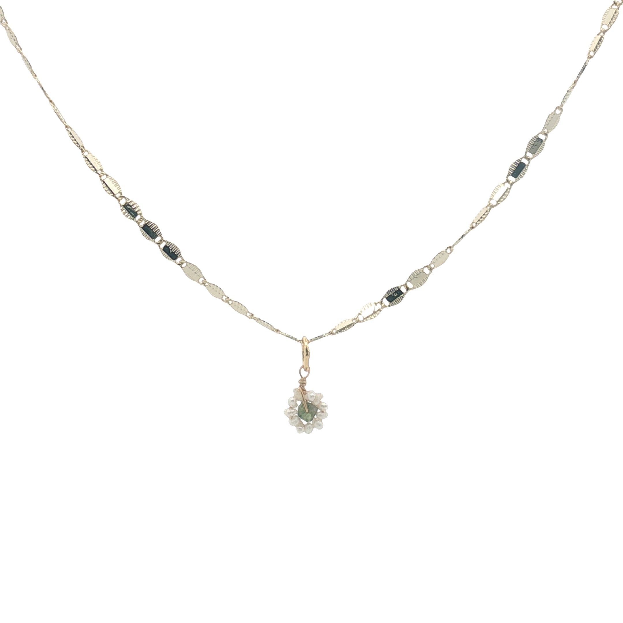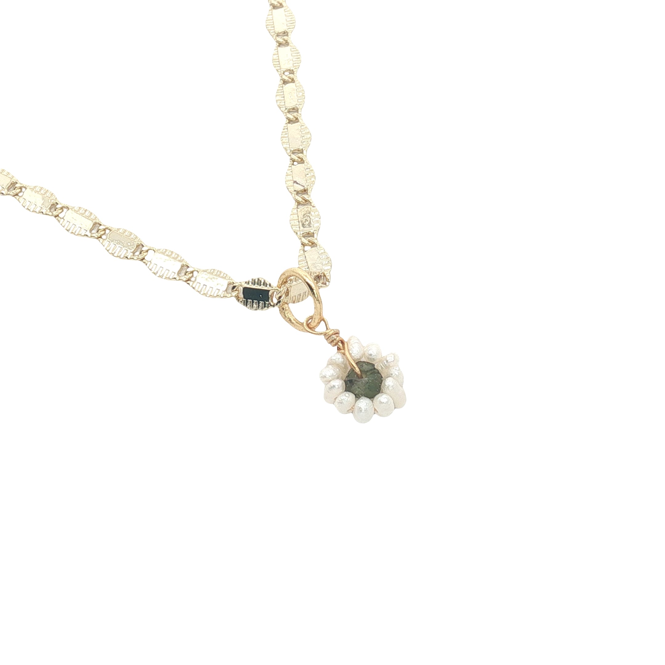 Pendentif petite fleur en tourmaline et perles de culture : 7 mm