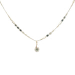 Collier doré petite fleur en tourmaline et perles de culture 38 cm