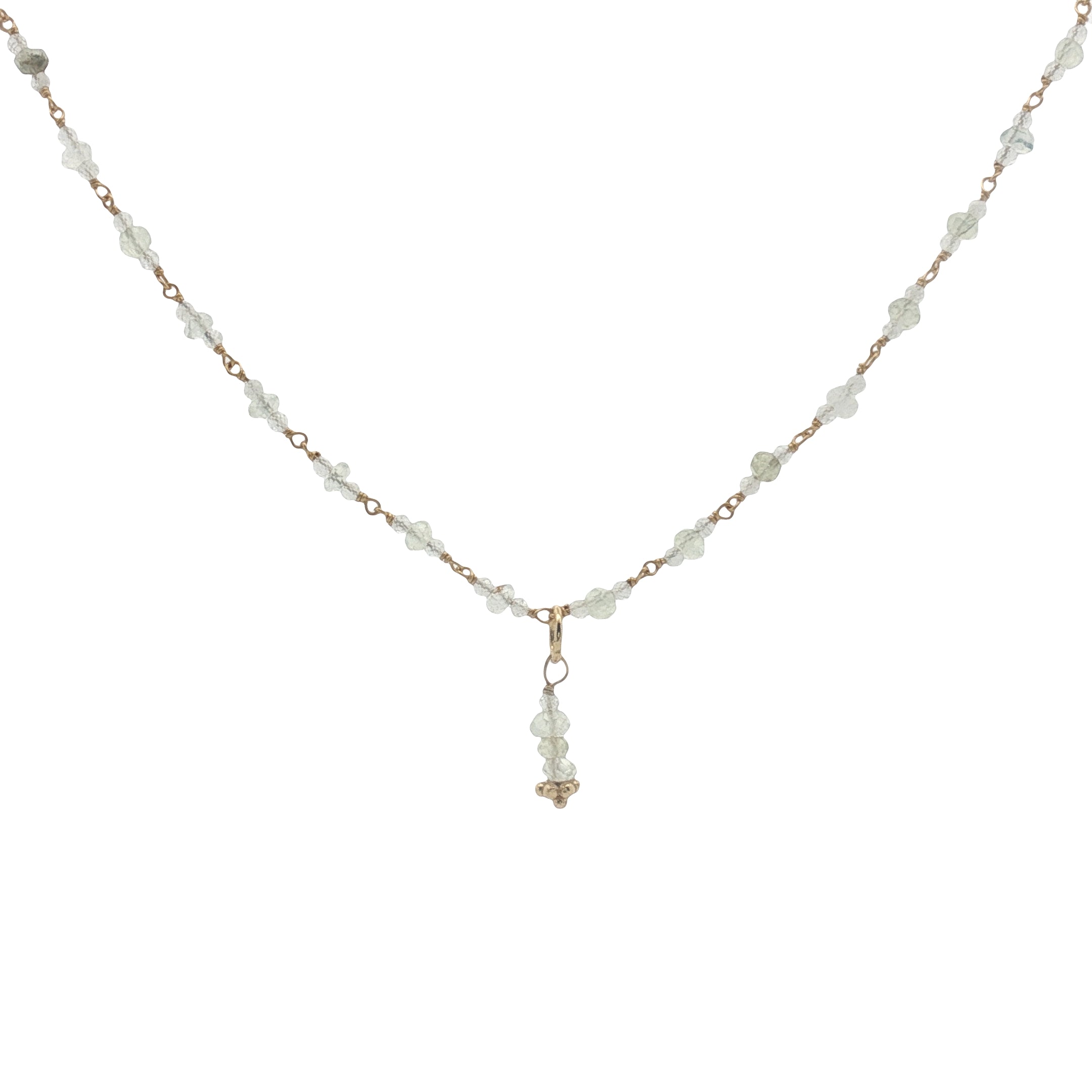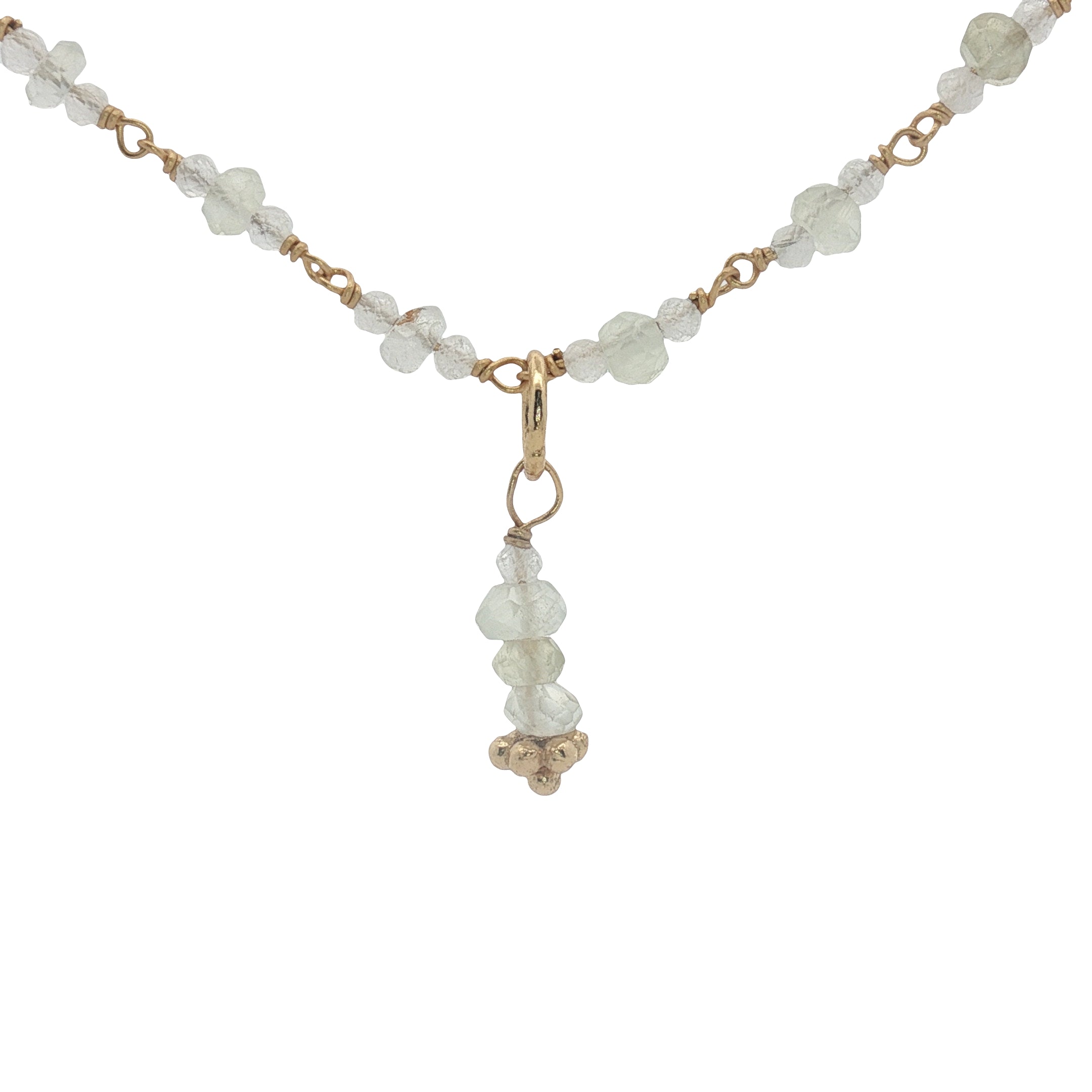 Collier doré en pierre de lune et prehnite 50 cm