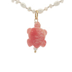 Collier doré tortue rose perles de culture 42 cm