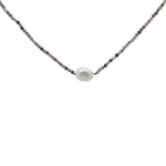 Collier doré tourmaline et perle de culture 42 cm