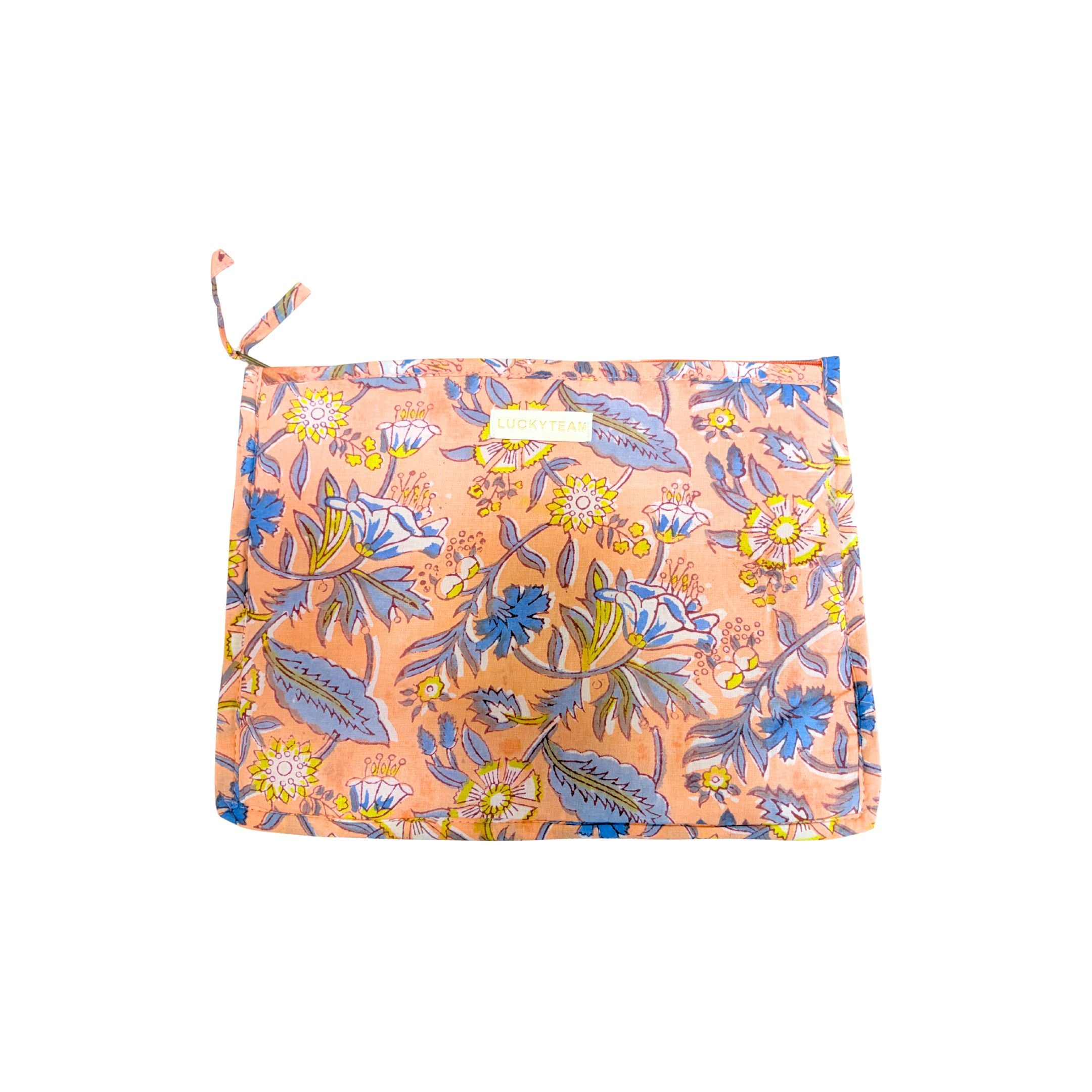 Large orange & blue flower travel pouch