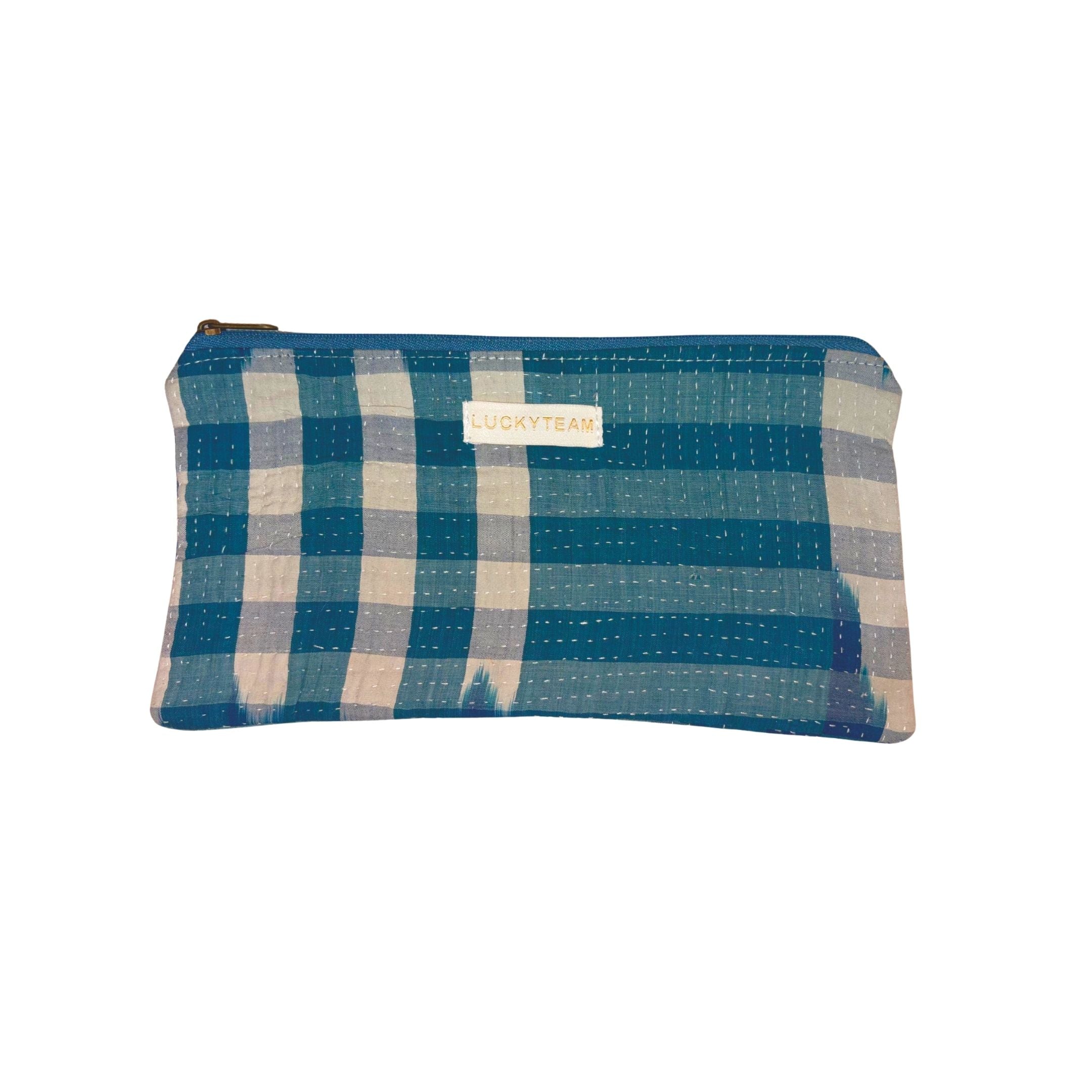 Pochette en Kantha imprimé bleu et blanc : 13 mm x 24 mm