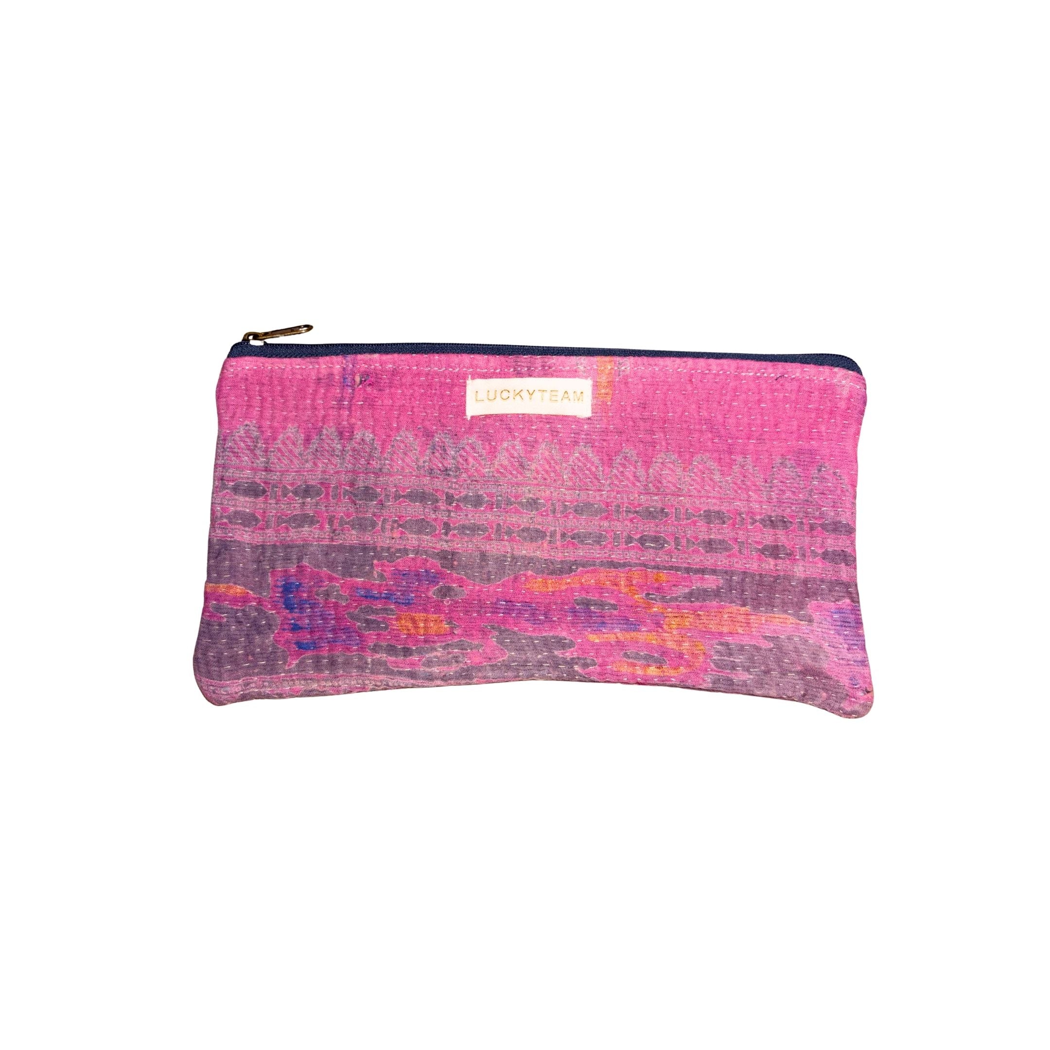 Petite pochette kantha imprimé rose et gris