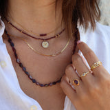 Choker necklace in brass gilded with 18k fine gold and natural stones in a row. The stones are faceted for more reflections.