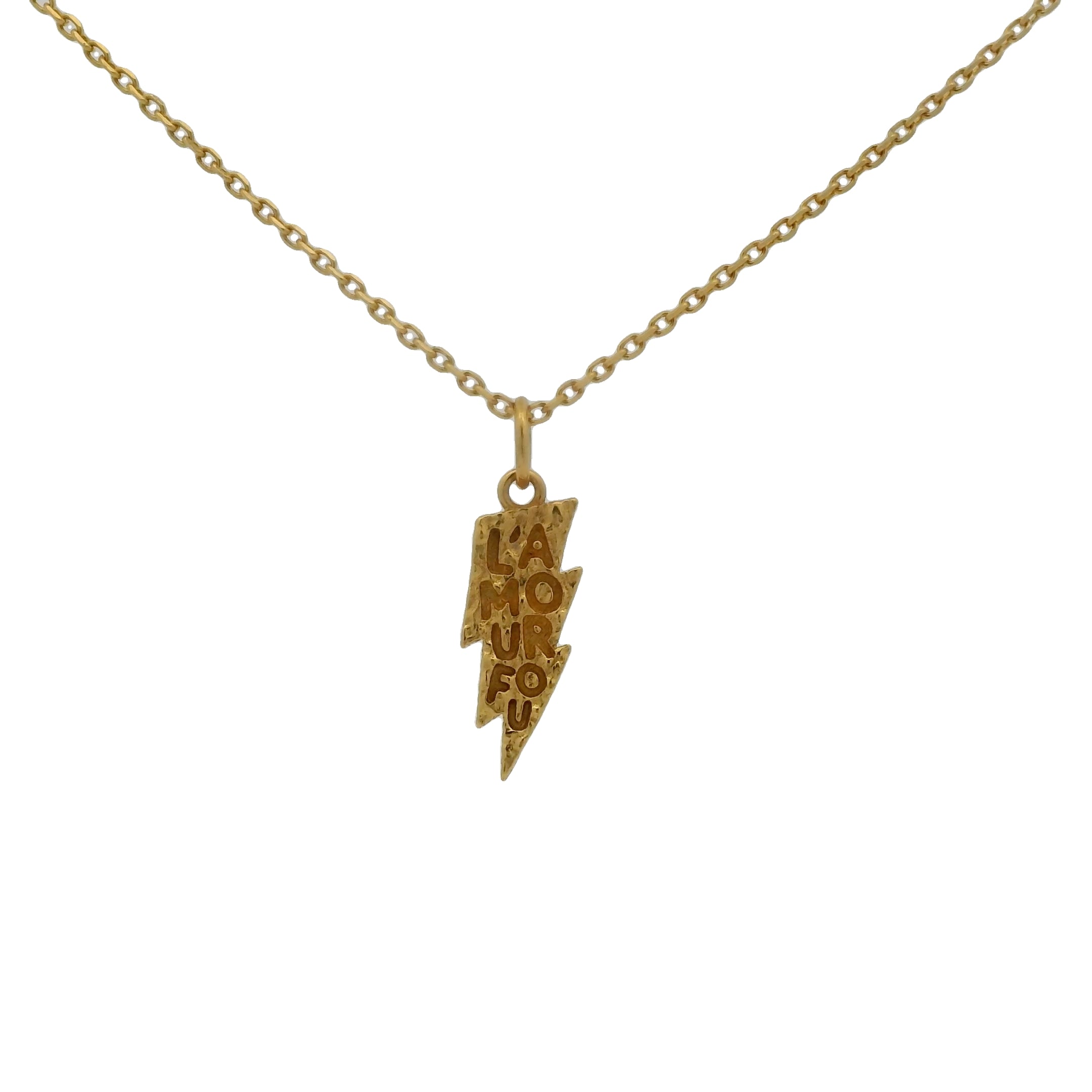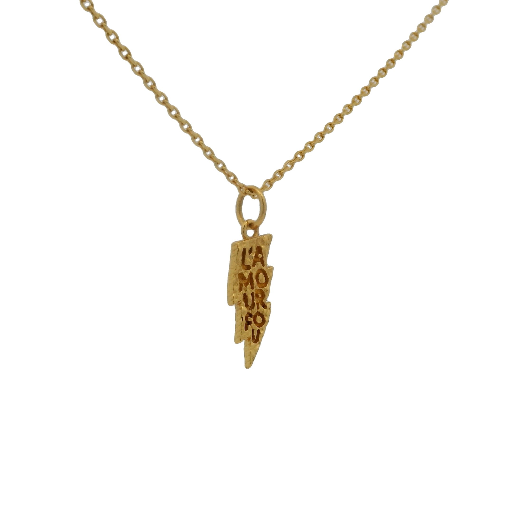 Collier doré éclair martelé "l'amour fou" 42 cm