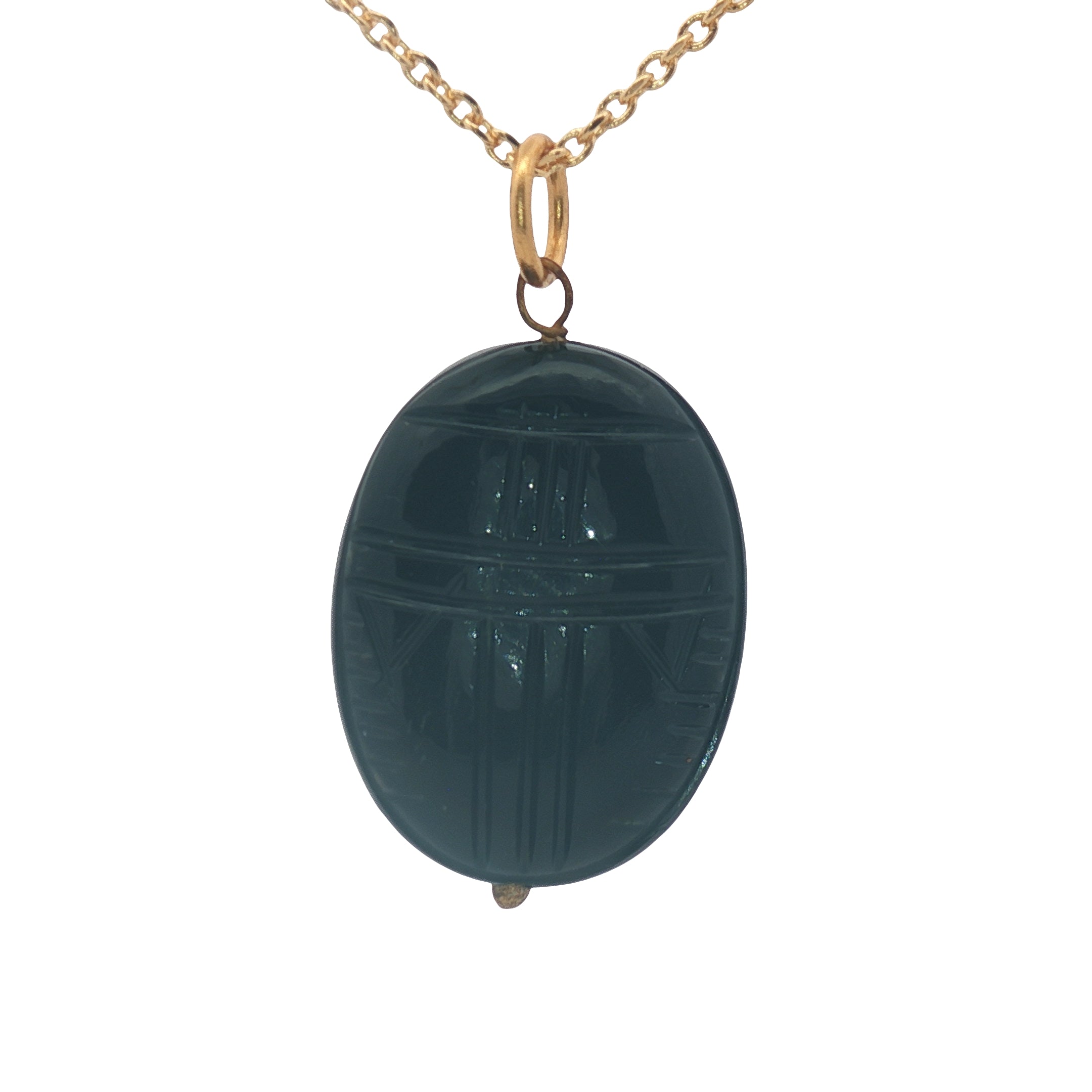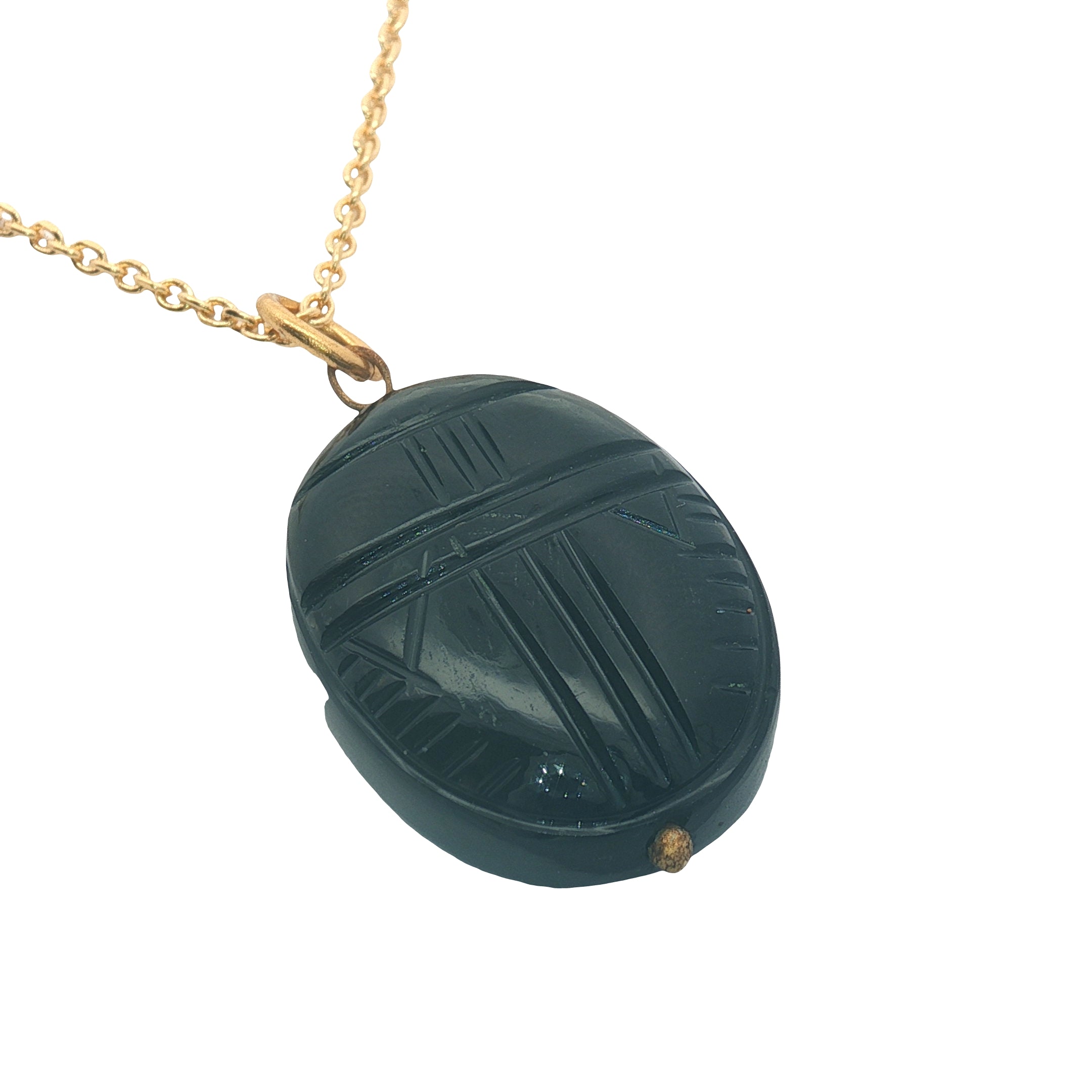 Collier doré grand scarabée taillé dans onyx noire 42 cm