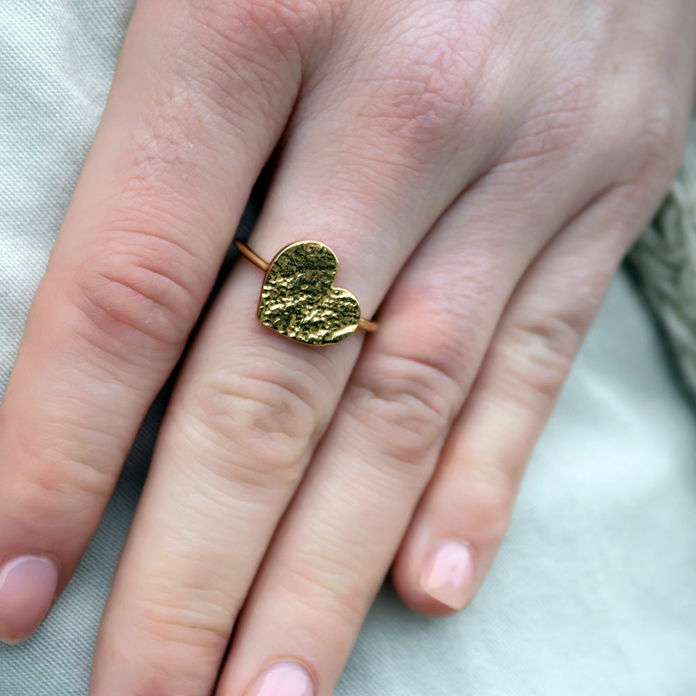 Bague en laiton doré à l'or fin 18k et coeur martelé.