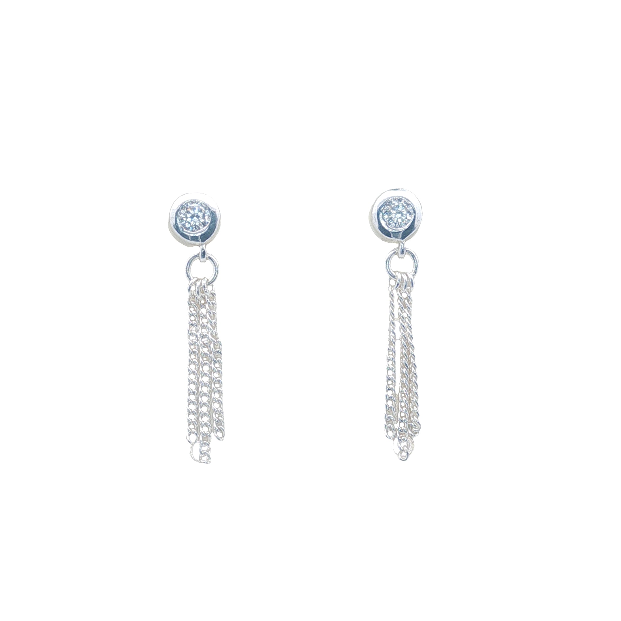 Boucles d'oreilles argent 925 zircon et 3 chainettes