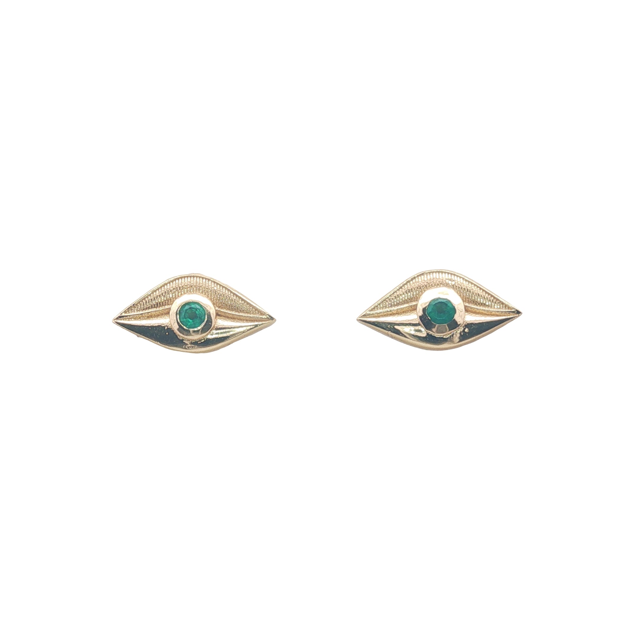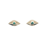 Boucles d'oreilles dorées puces oeil avec onyx verte